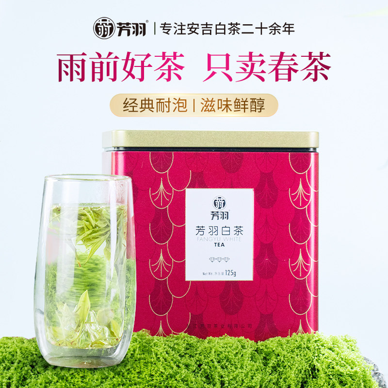 2025年新茶芳羽安吉白茶正宗雨前绿茶叶125克春茶白茶官方旗舰店