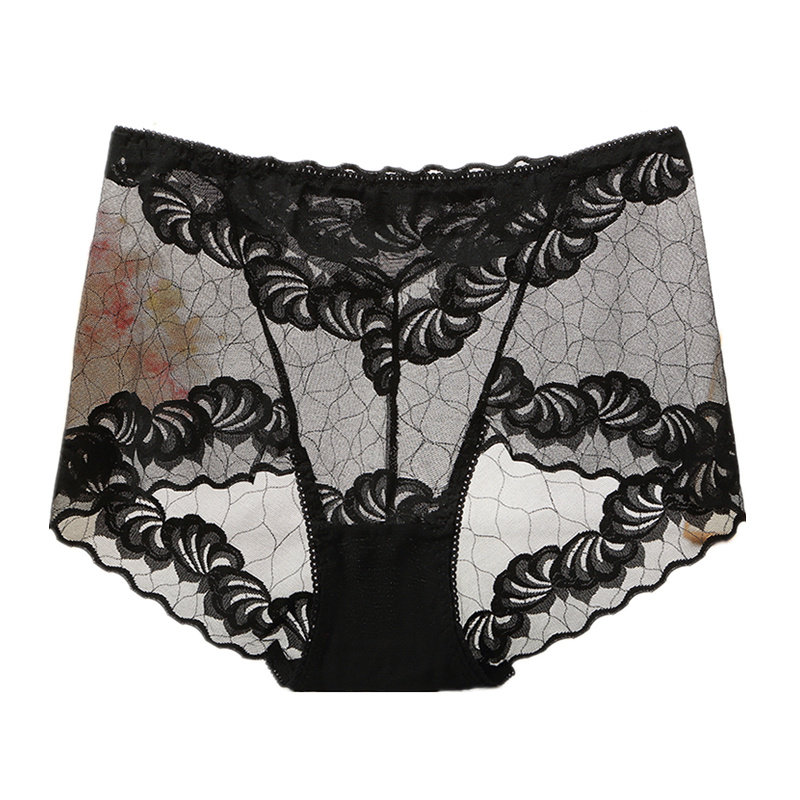 大码内裤女胖妹妹200斤透明性感中腰超薄网纱蕾丝镂空火辣三角裤