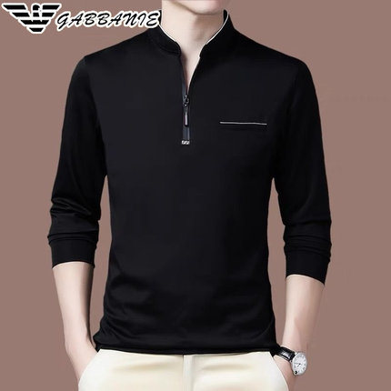 正品意大利男士长袖立领t恤高端商务休闲棉卫衣春装新款打底衫潮