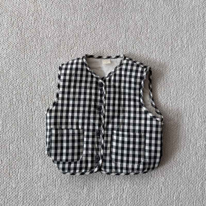 韩国进口婴幼童装复古碎花格子马甲外套秋冬双层纯棉防风背心坎肩