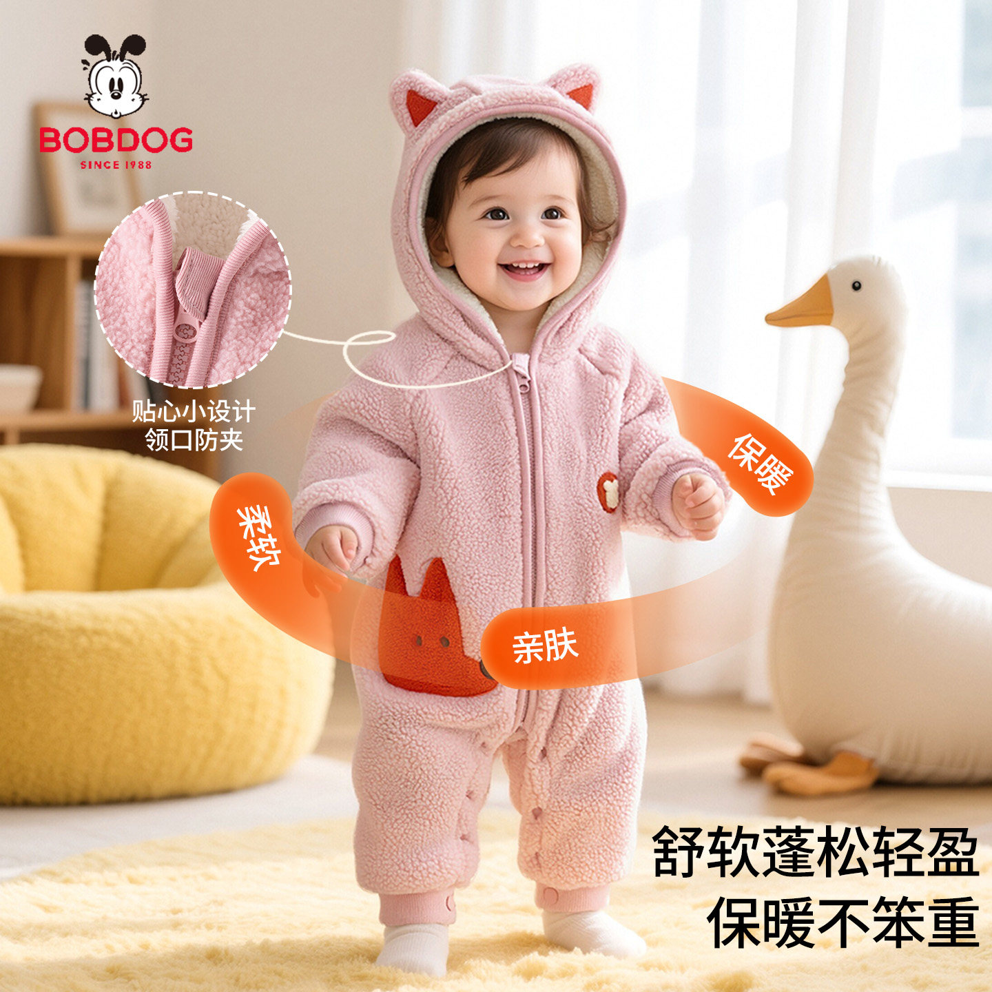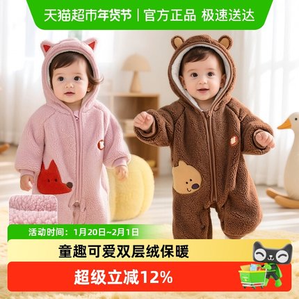 巴布豆0-18月婴儿衣服冬天冬季夹棉宝宝连体衣男女加厚棉衣外出服