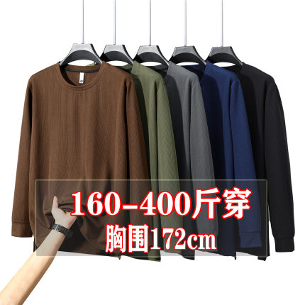400斤特大码圆领长袖卫衣男加肥加大中青年宽松简约纯色上衣潮300