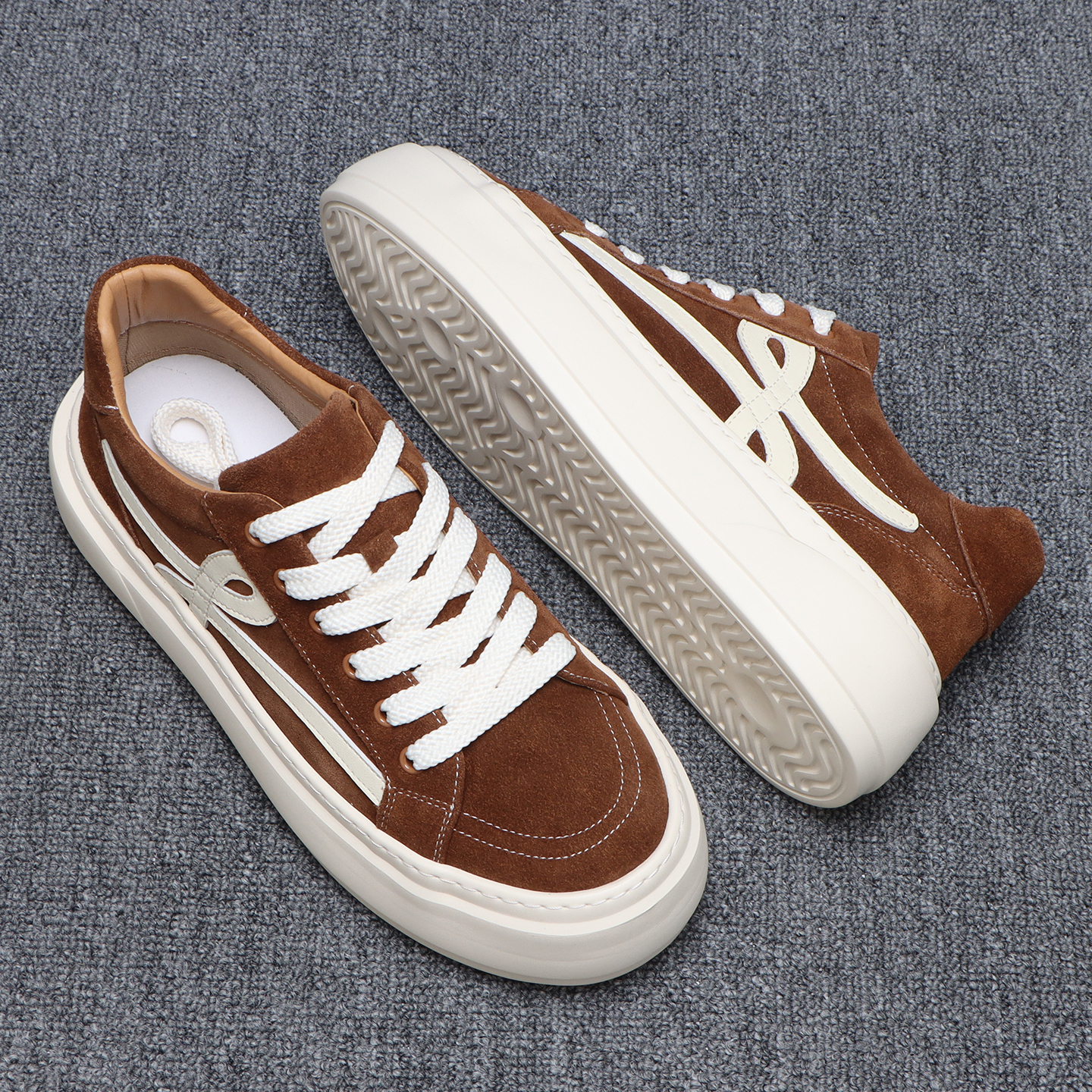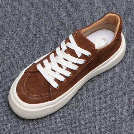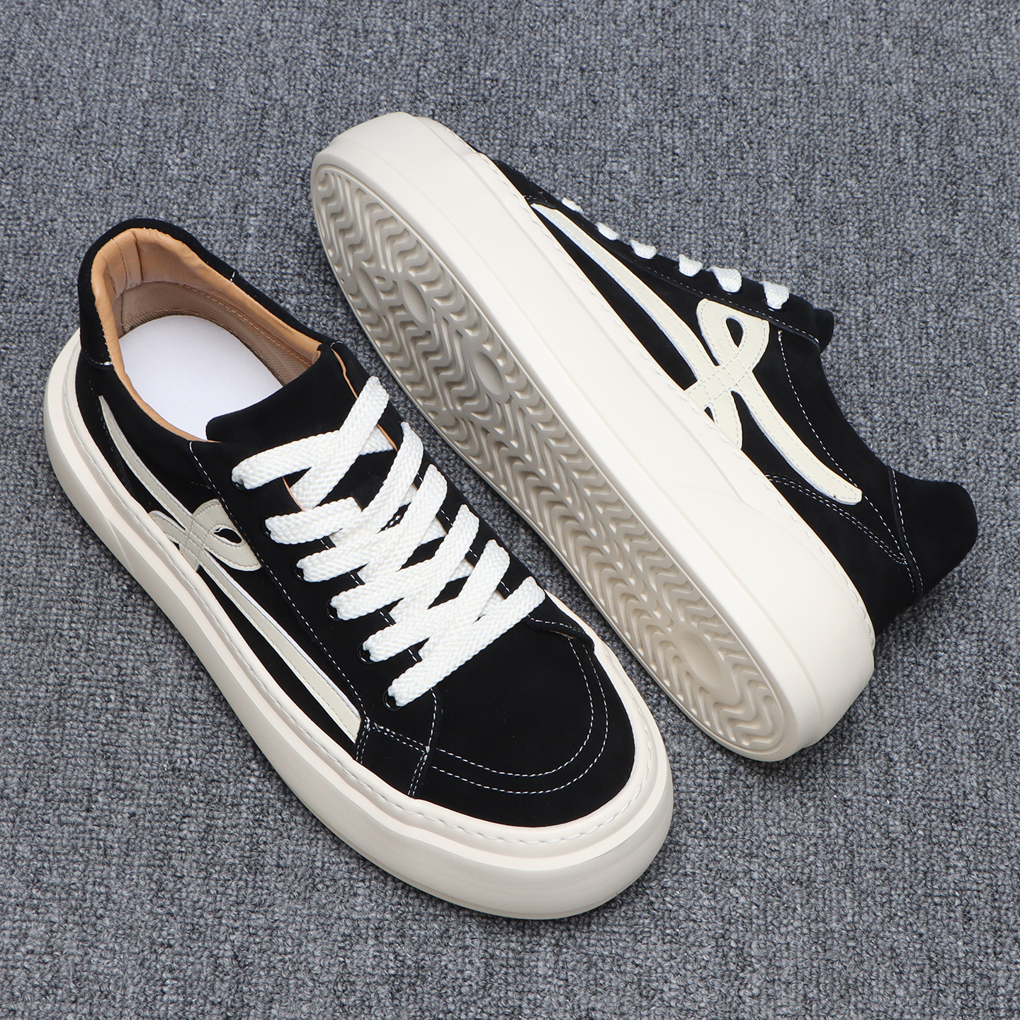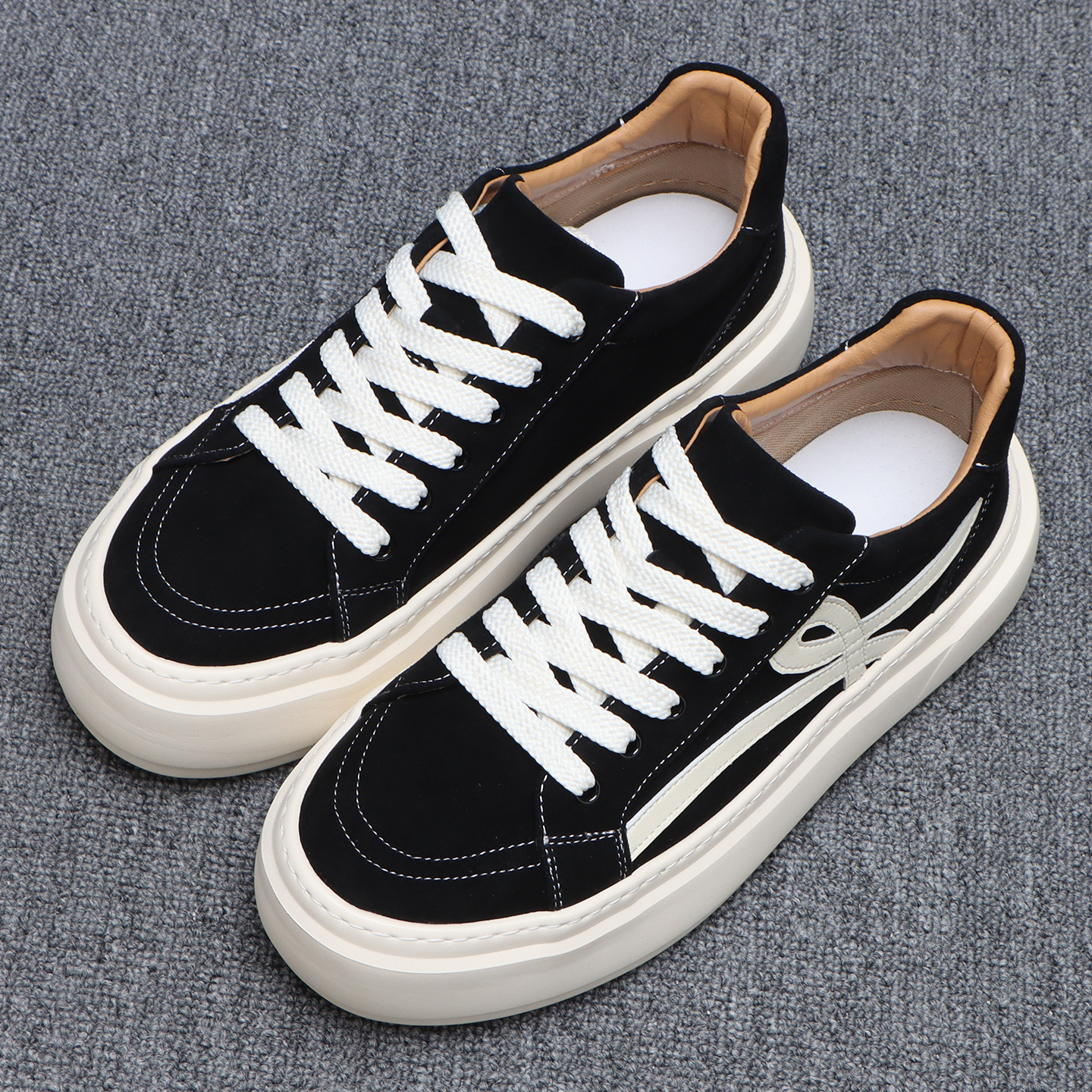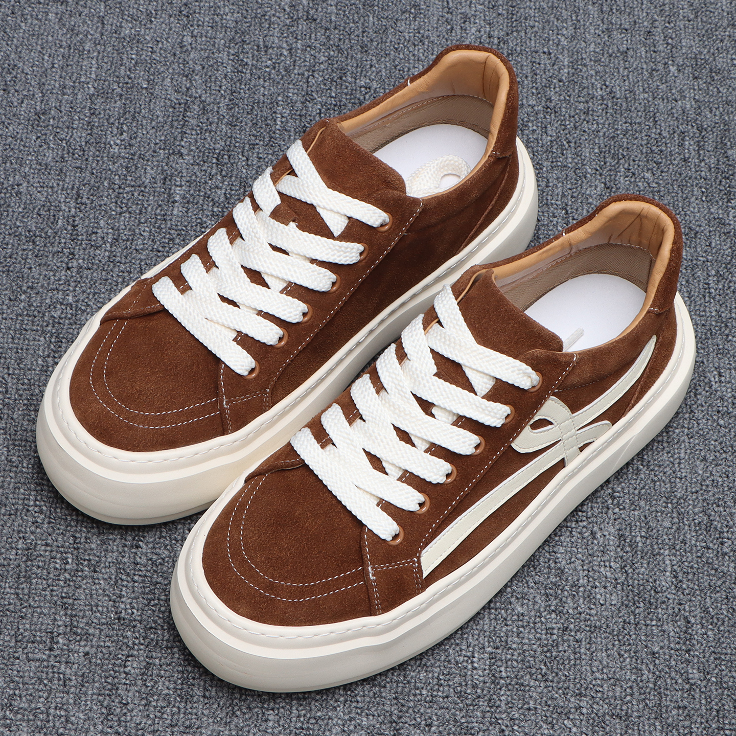 厚底男鞋2025秋季新款韩版百搭磨砂牛皮板鞋潮流低帮系带休闲鞋子