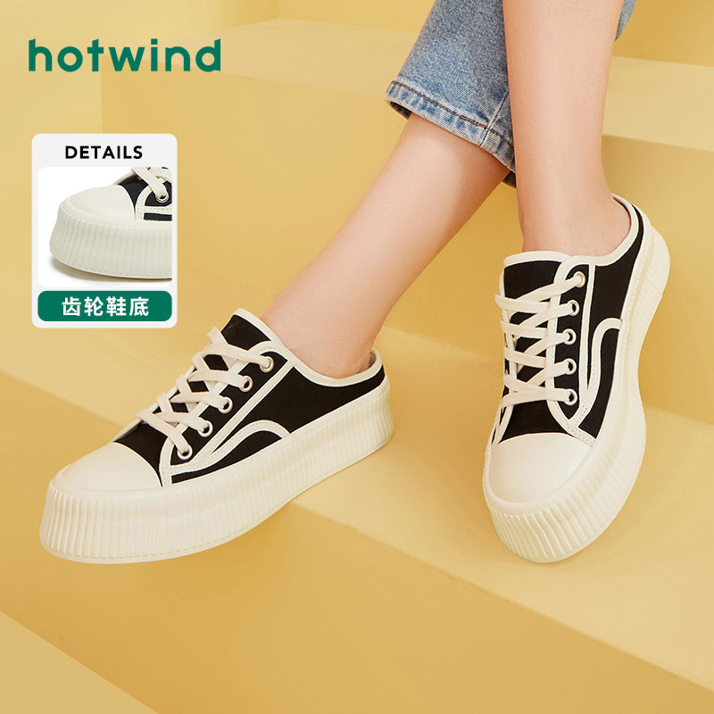 热风女鞋夏季休闲百搭舒适帆布鞋单鞋饼干鞋厚底显高单鞋拖鞋外穿