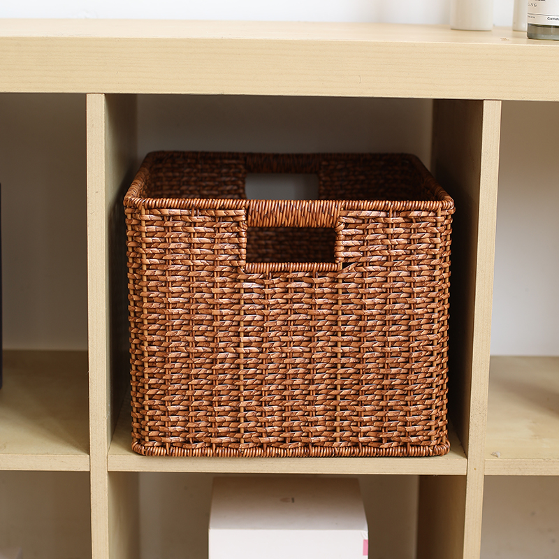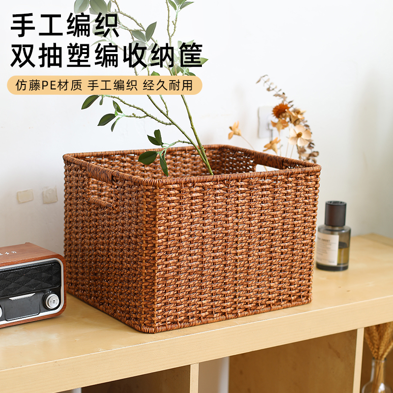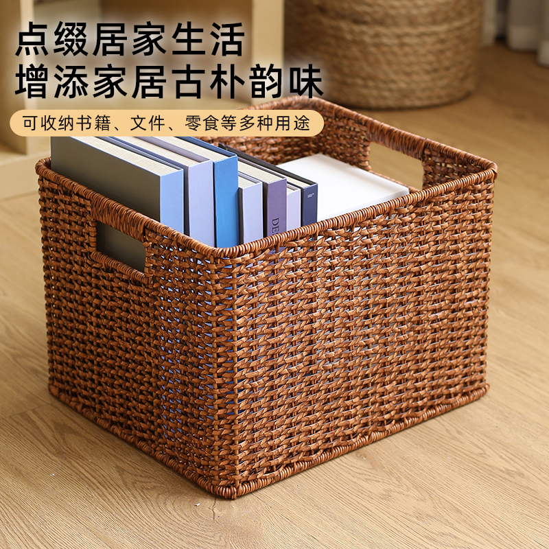 定制格子柜收纳筐书柜抽屉式仿藤编书籍玩具篮衣物复古定做整理篮