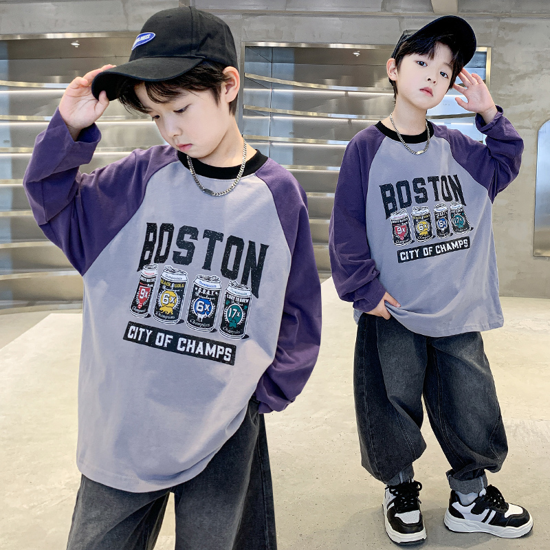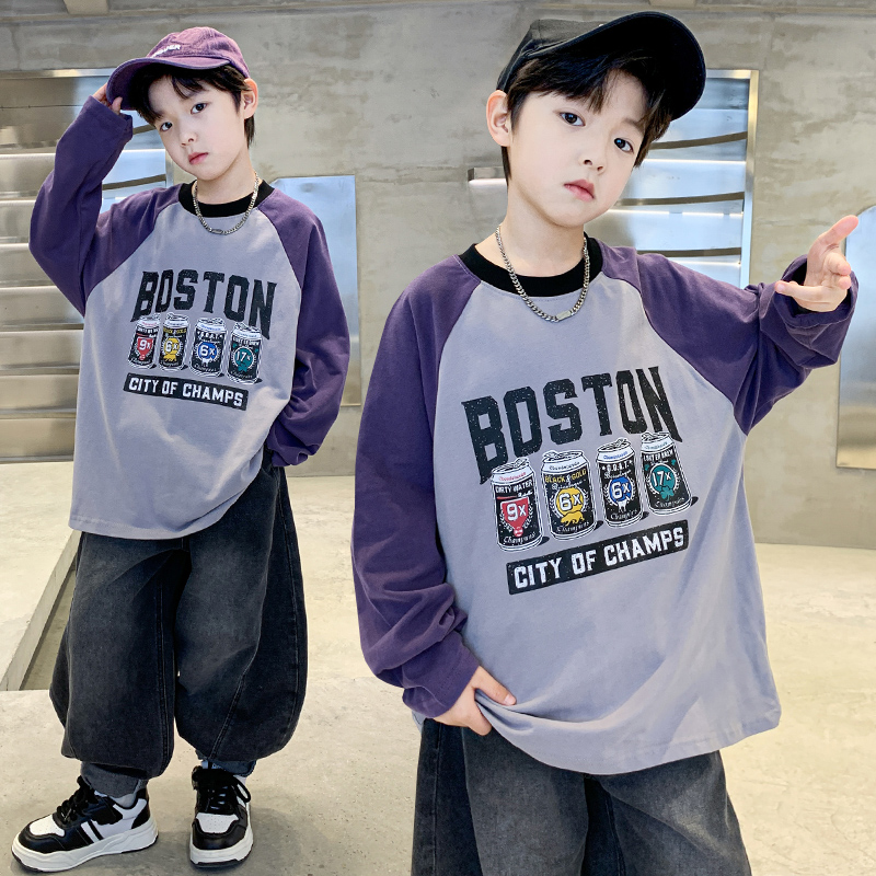 儿童卫衣春秋新款男童上衣中大童T恤长袖秋装季宽松男孩打底衫潮t