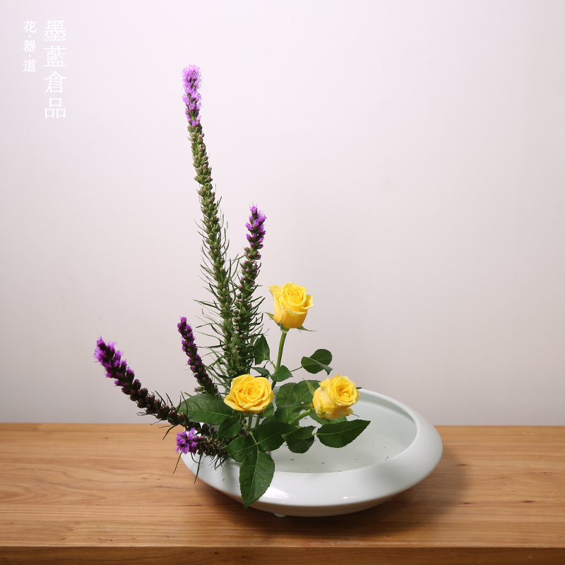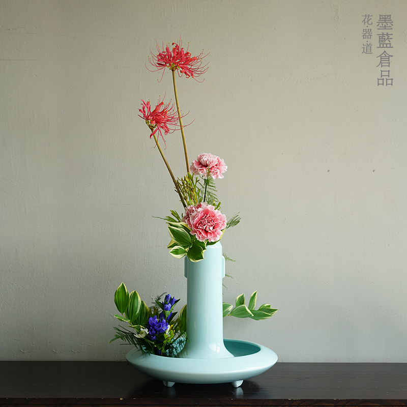 小原流花器回响双耳瓶禅意陶瓷中式插花器皿日式花道花瓶投入瓶