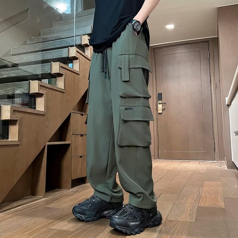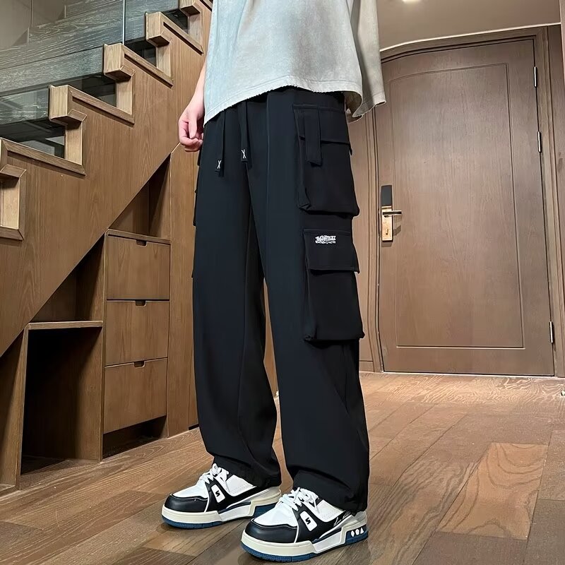 夏季薄款多口袋工装裤男士潮牌阔腿休闲裤学生宽松直筒运动长裤子