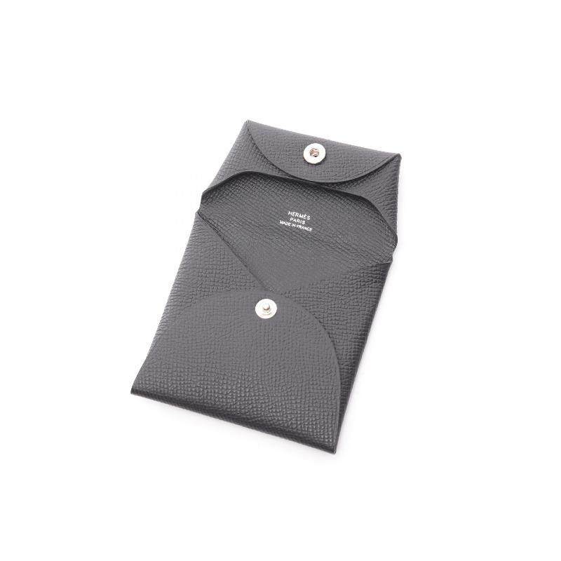 中古Hermes爱马仕女A级95新coin case零钱包牛皮零钱包黑色