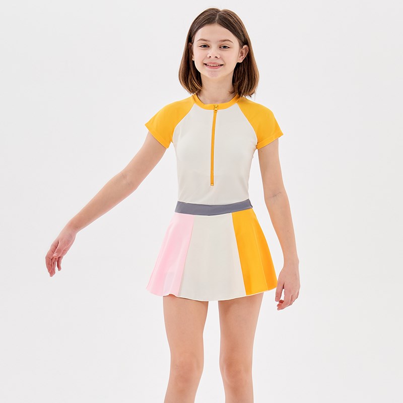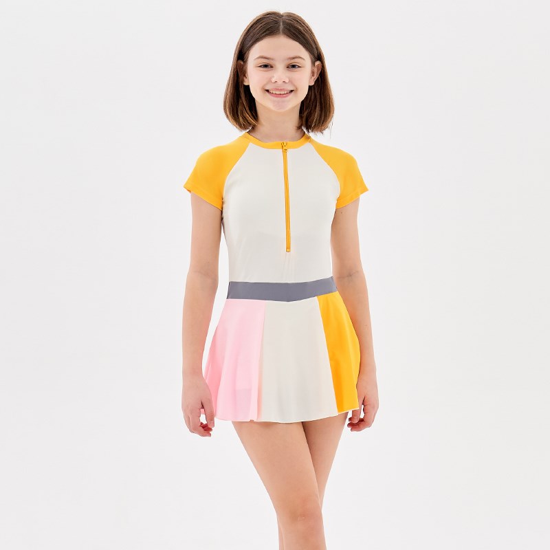 泳衣女童中大童初中生保守连体裙式2024新款女孩防晒泡温泉游泳衣