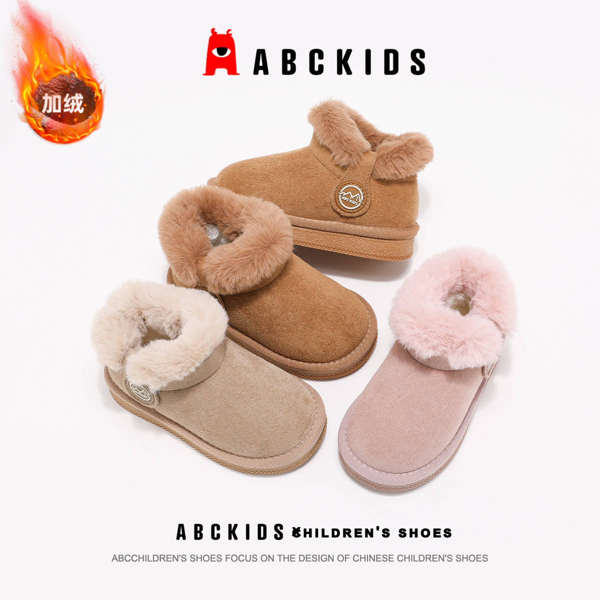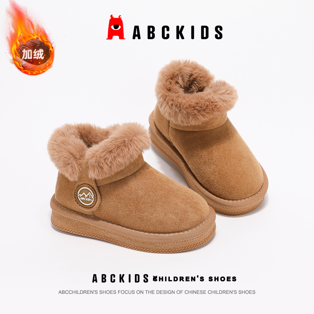 ABCkids童鞋儿童加绒雪地靴小童冬季加厚短筒靴女童保暖棉靴男童
