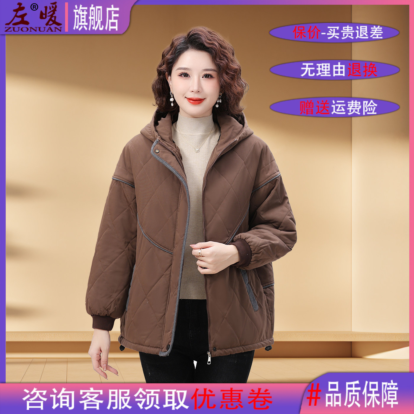 200斤大码新款棉服女加肥胖妈妈冬装连帽保暖厚棉袄中老年宽棉衣
