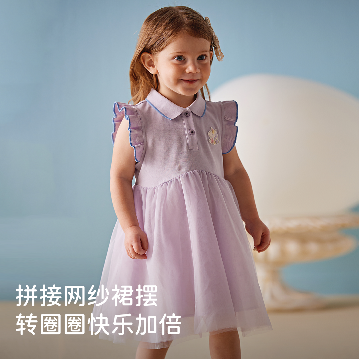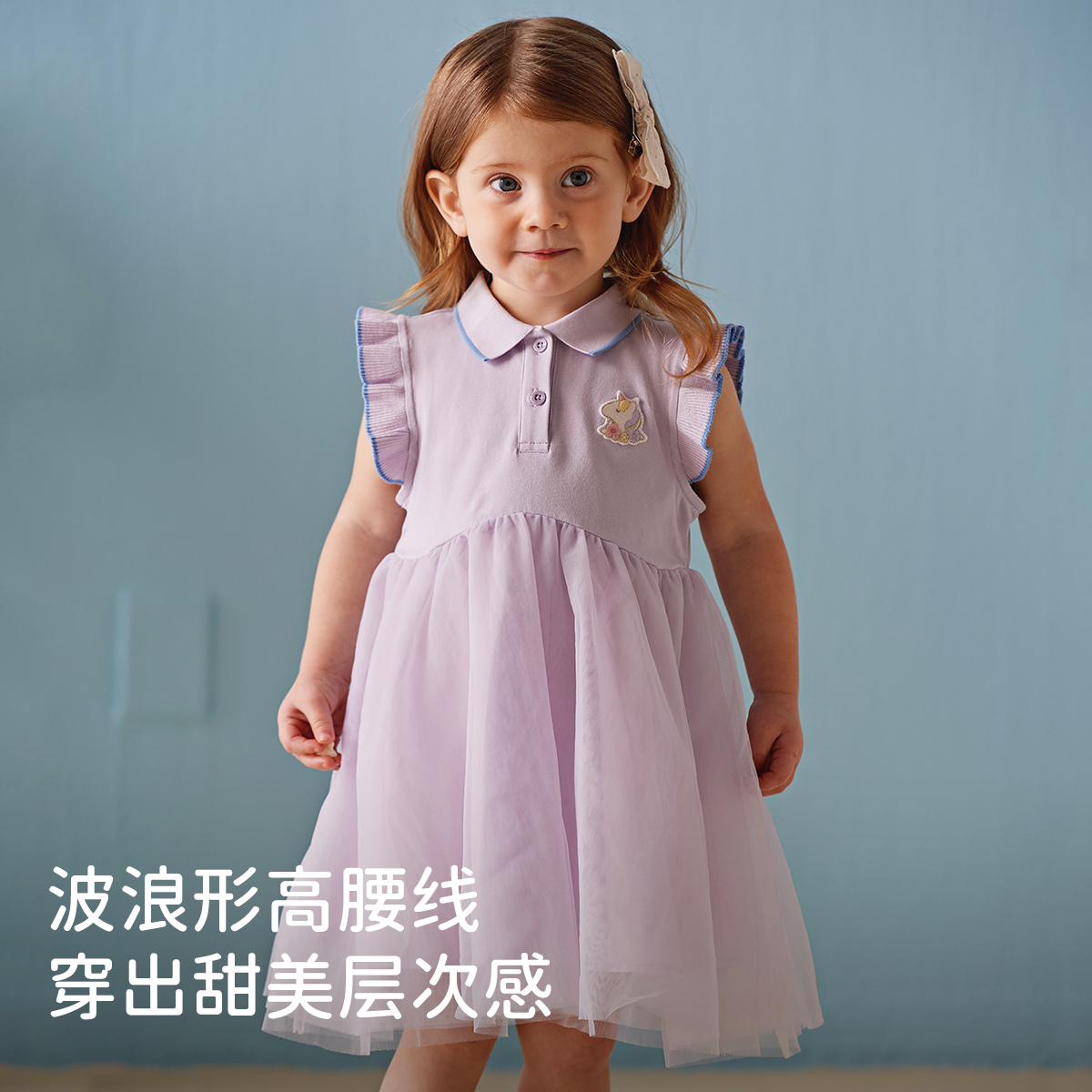 戴维贝拉女童连衣裙夏装宝宝休闲POLO裙儿童网纱裙子童装