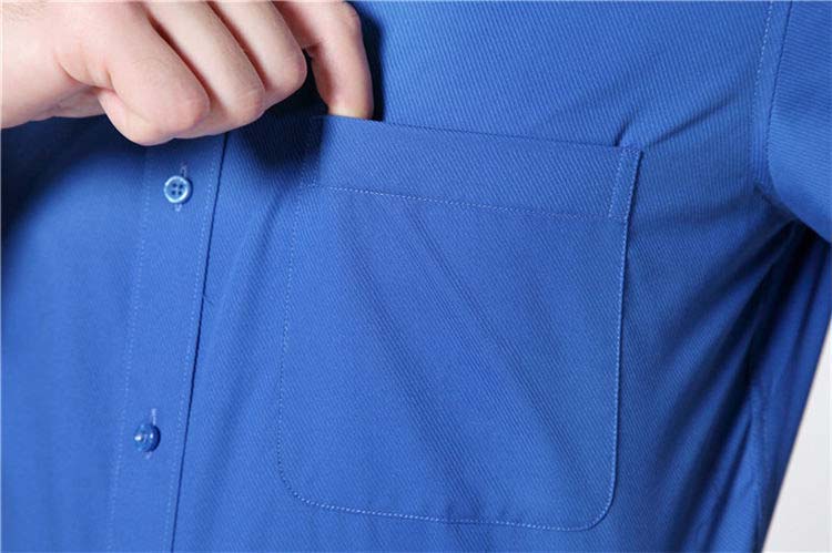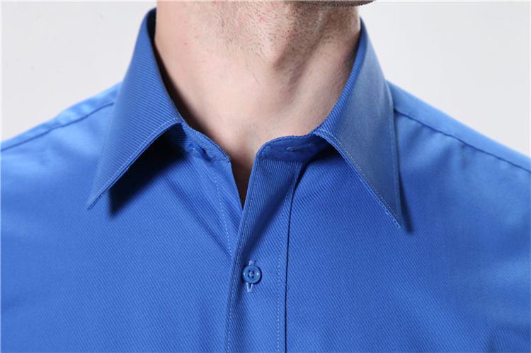 男装短袖衬衫宝蓝色暗斜纹正装衬衣修身免烫职场上班面试商务休闲