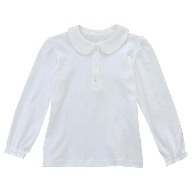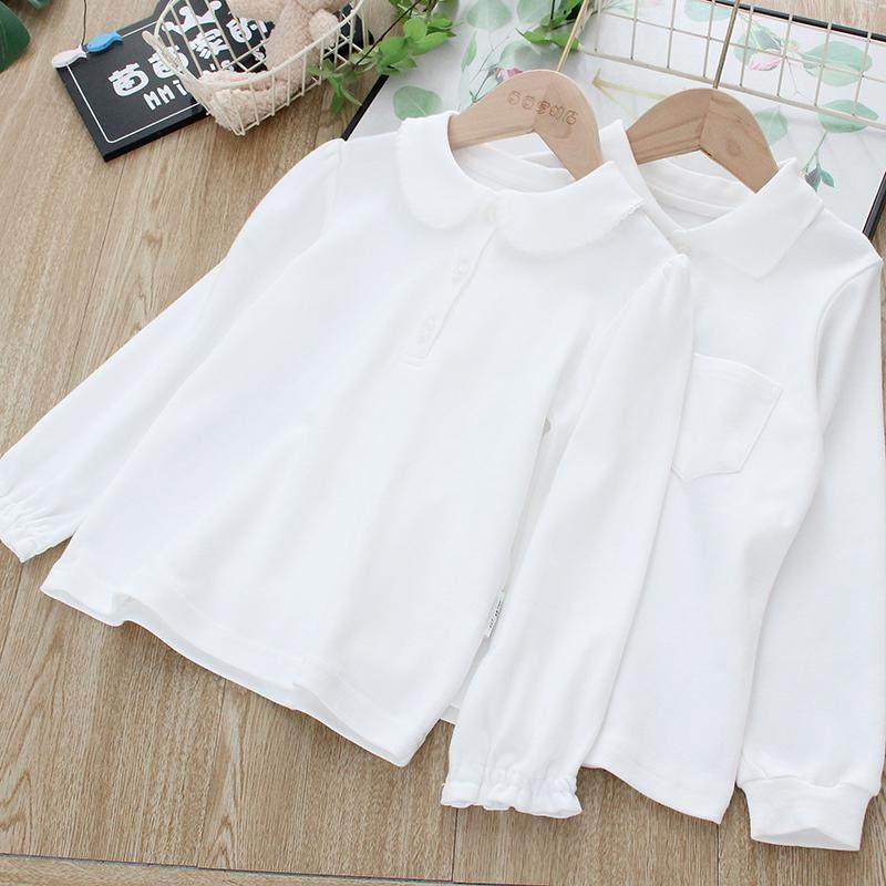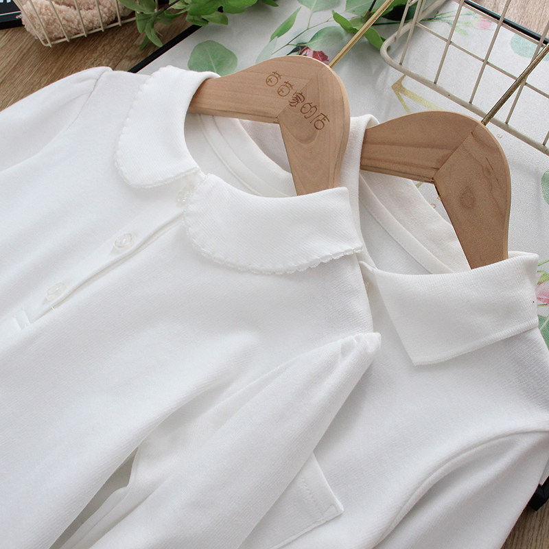 男女童纯棉翻领打底衫春秋款校服衬衫儿童白色百搭长袖T恤中大童