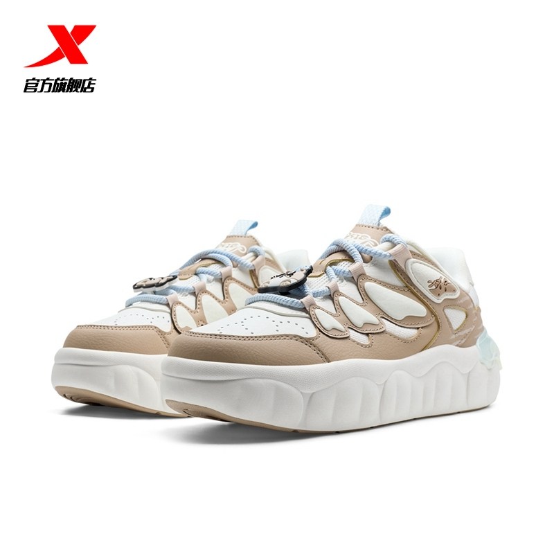 特步布丁女鞋2026春季新款板鞋厚底增高增高学生正品休闲运动鞋子
