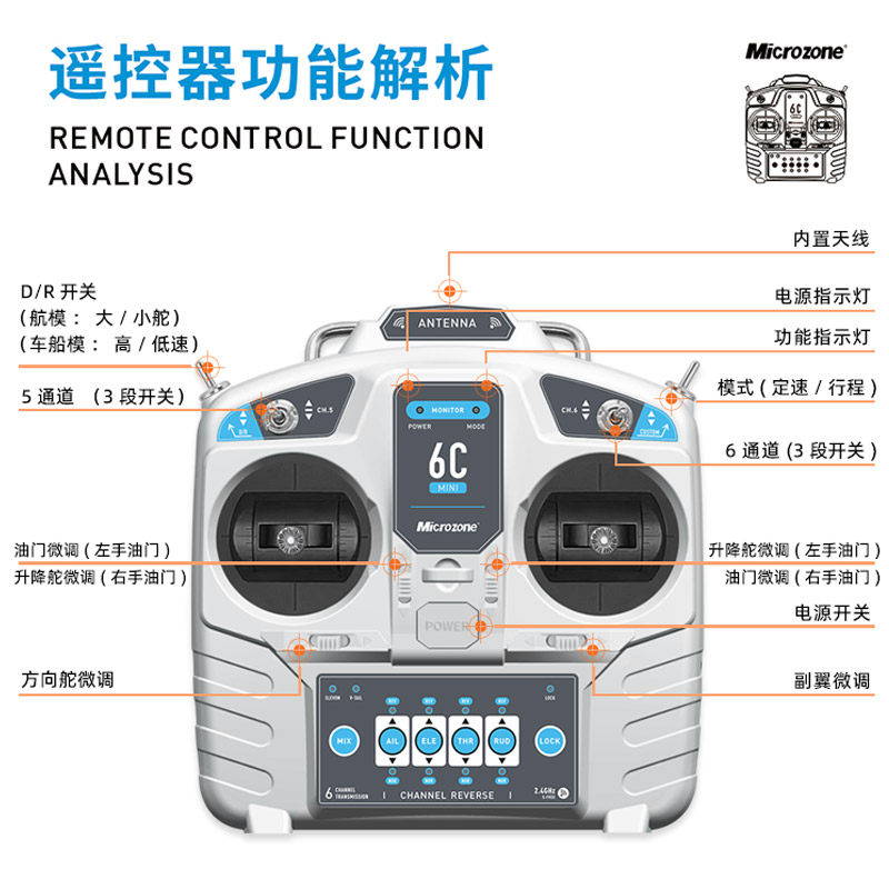 迈克MC6C miniV2版6通2.4g航模遥控器接收机天线版固定翼多轴车船