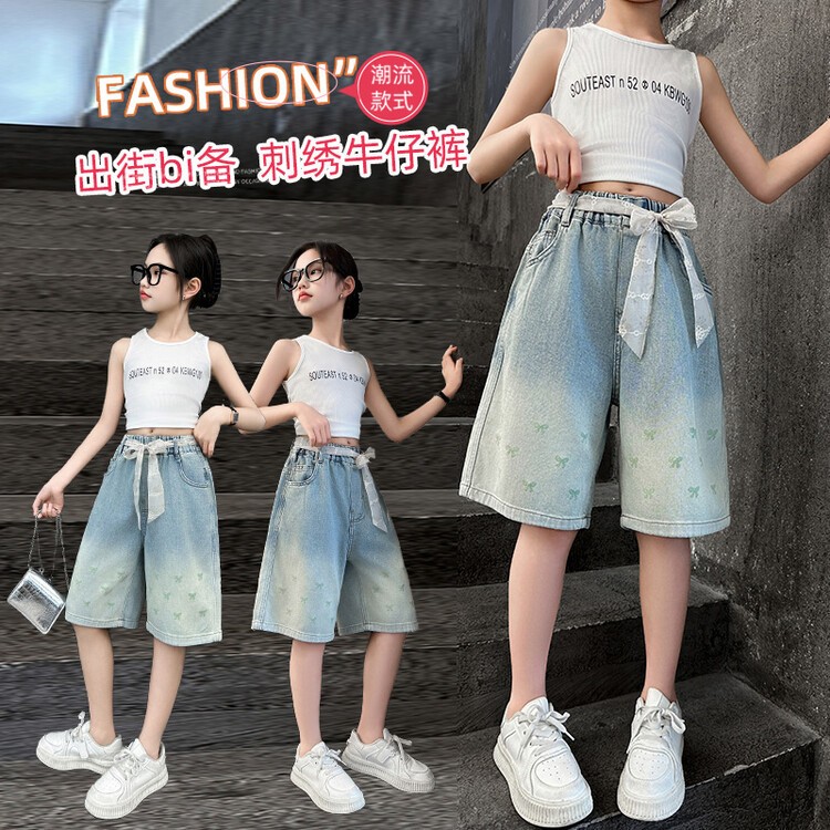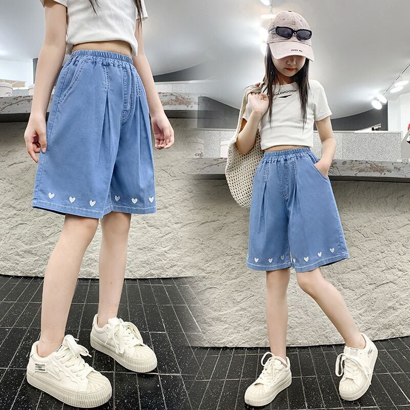 女童五分裤牛仔短裤天丝热裤夏季薄款夏天中大儿童外穿女孩中裤子