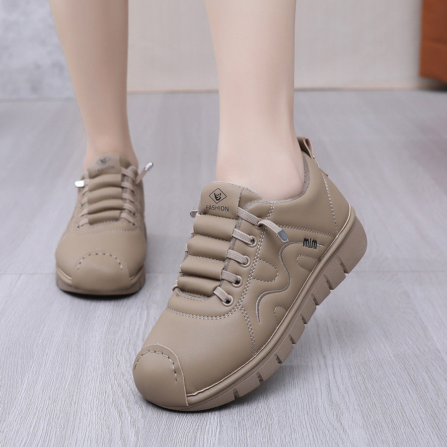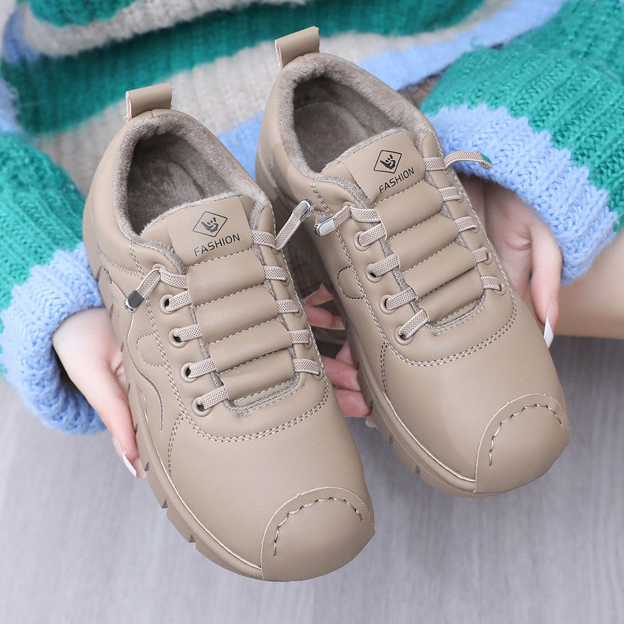 冬季平底系带高帮棉皮鞋中年女士皮靴45岁加绒妈妈短靴软底老棉鞋