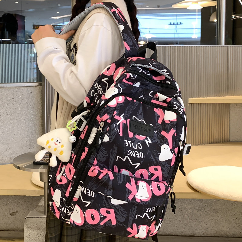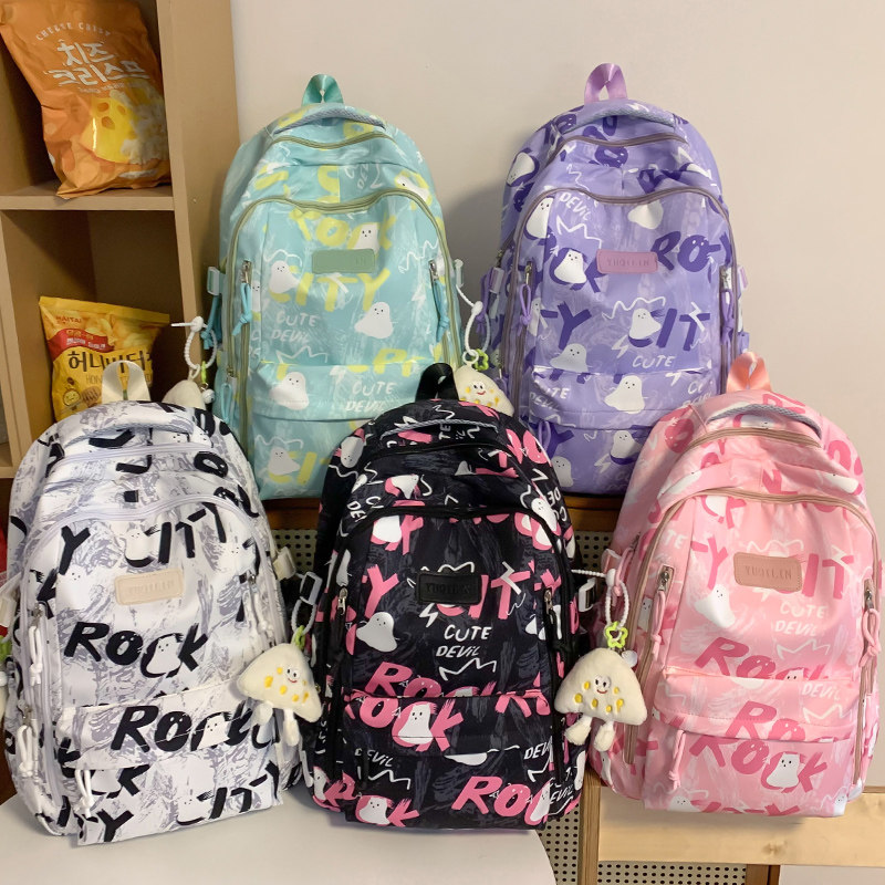 2025夏新款大容量卡通字母双肩包女初高中学生书包防水轻便背包男