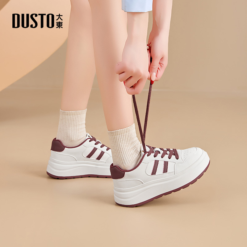 大东小白鞋女鞋2025秋季新款休闲平底中跟系带拼色设计Q0388