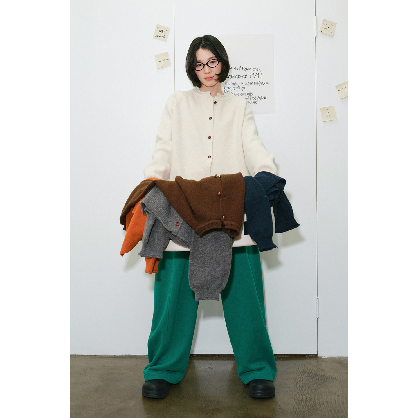 鹿与飞鸟“五色杂货铺”蓬松保暖混纺圆领五色插肩袖针织开衫7094
