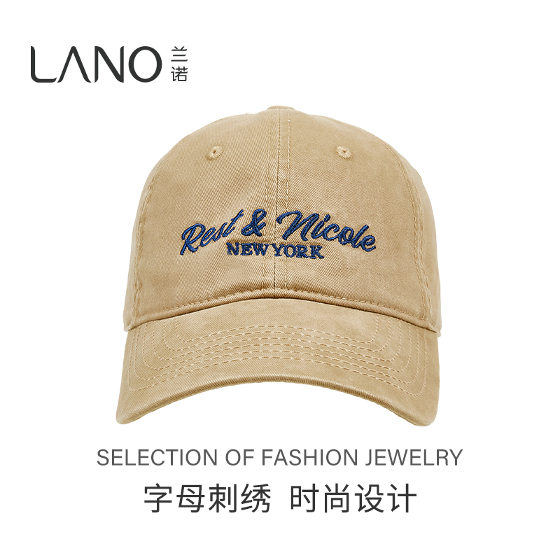 兰诺字母刺绣棒球帽女2025秋季新款大头围显脸小硬顶鸭舌帽子户外