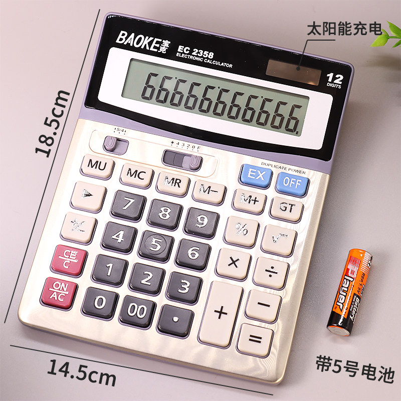 宝克EC2358太阳能双电源计算器办公计算器太阳能计算机财务计算器