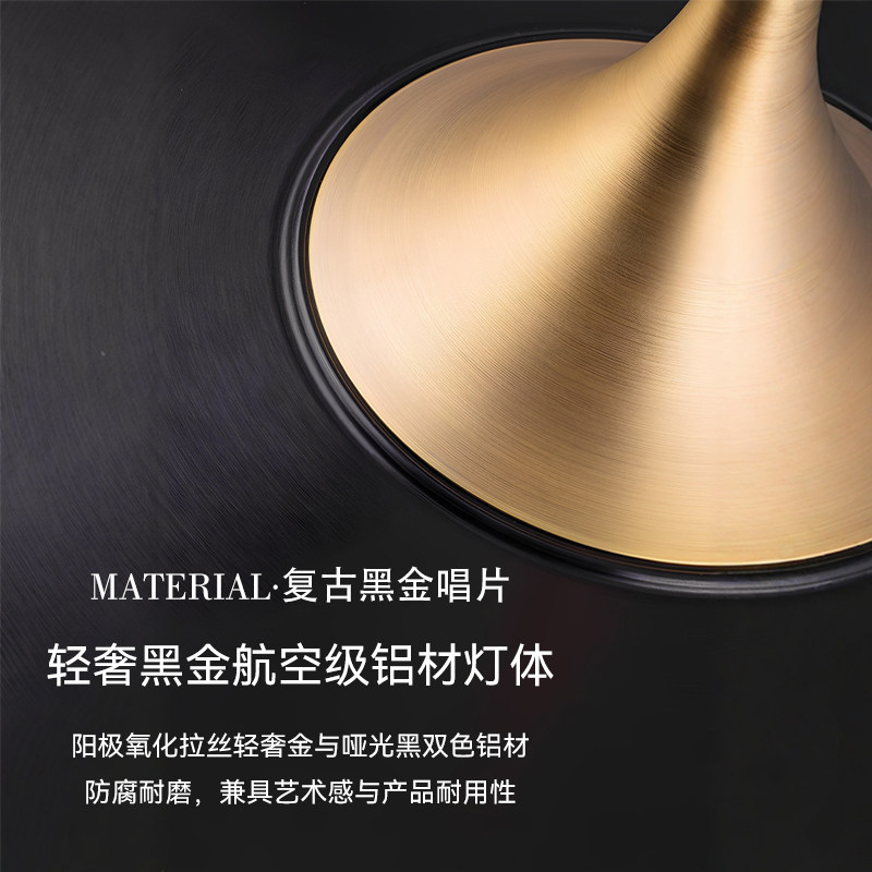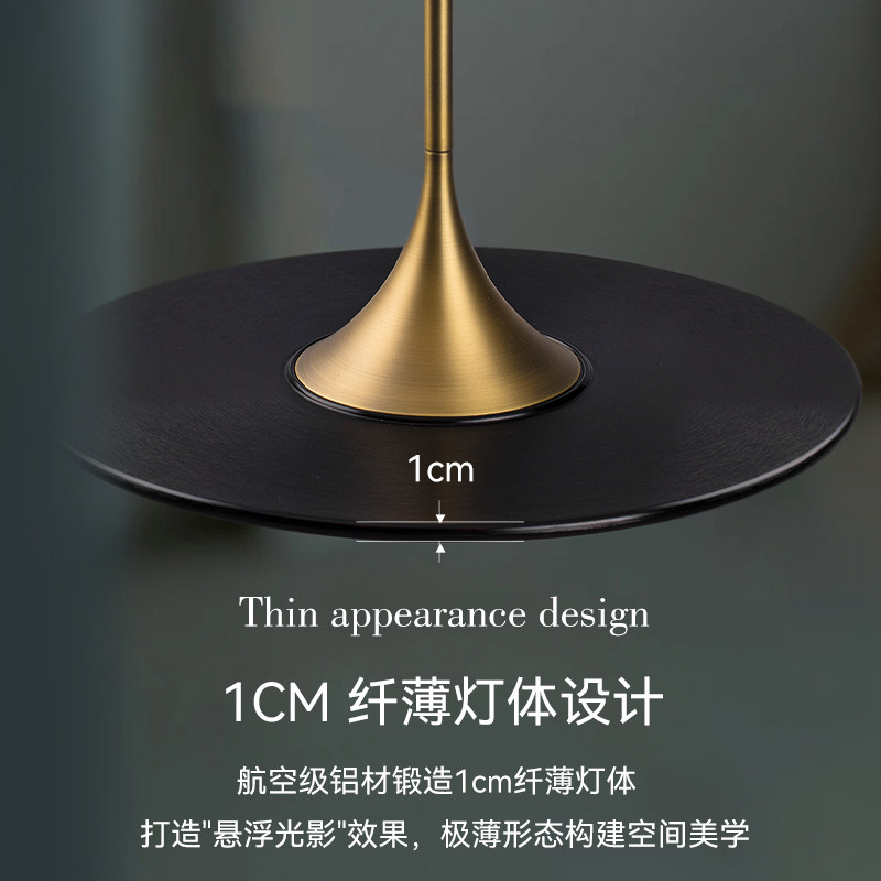 意式超薄飞碟餐厅吊灯黑金复古风北欧餐厅灯简约圆形吊灯书房吊灯