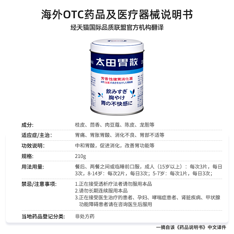 【自营】太田胃散胃药健胃消化药48包养胃胃痛210g肠胃药通便药