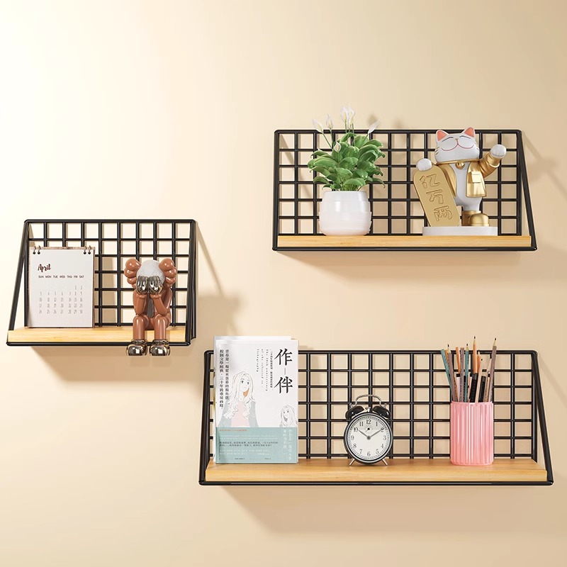 墙上置物架免打孔客厅创意一字木板壁挂书架寝室床头搁板货挂篮架