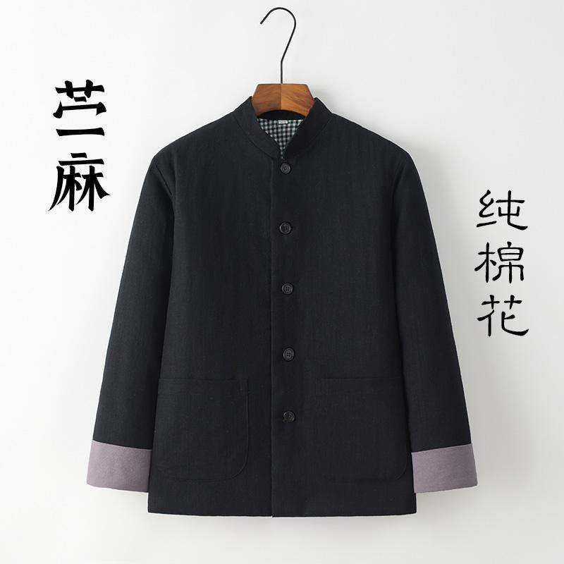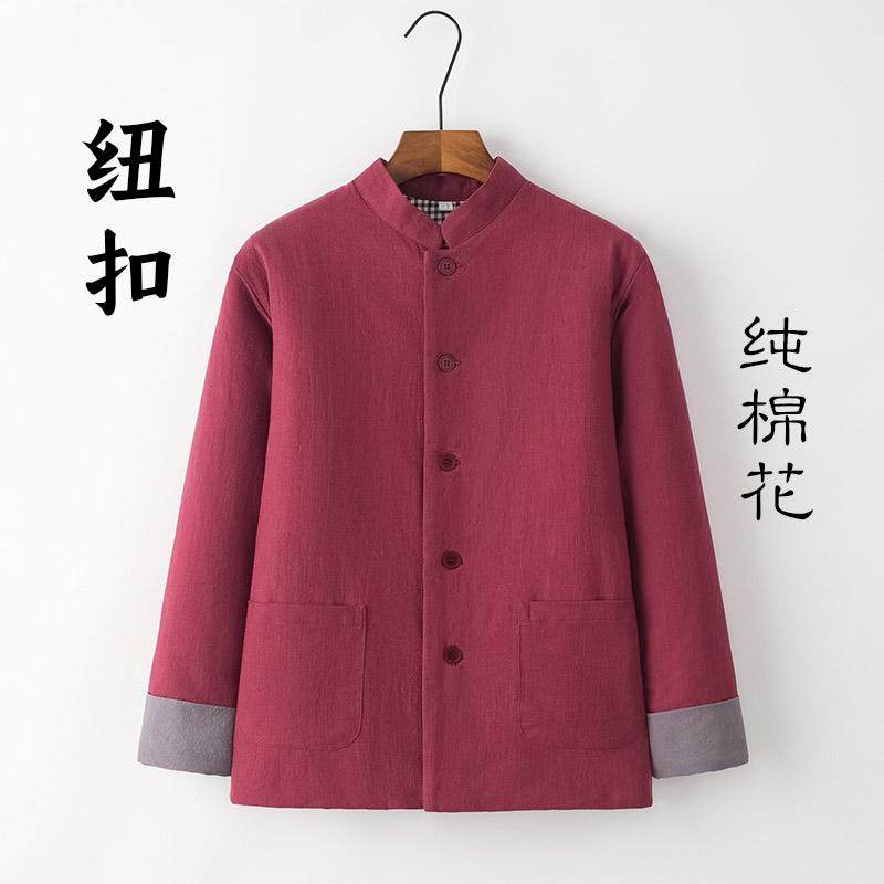 亚麻唐装棉花袄中式加厚棉服纽扣