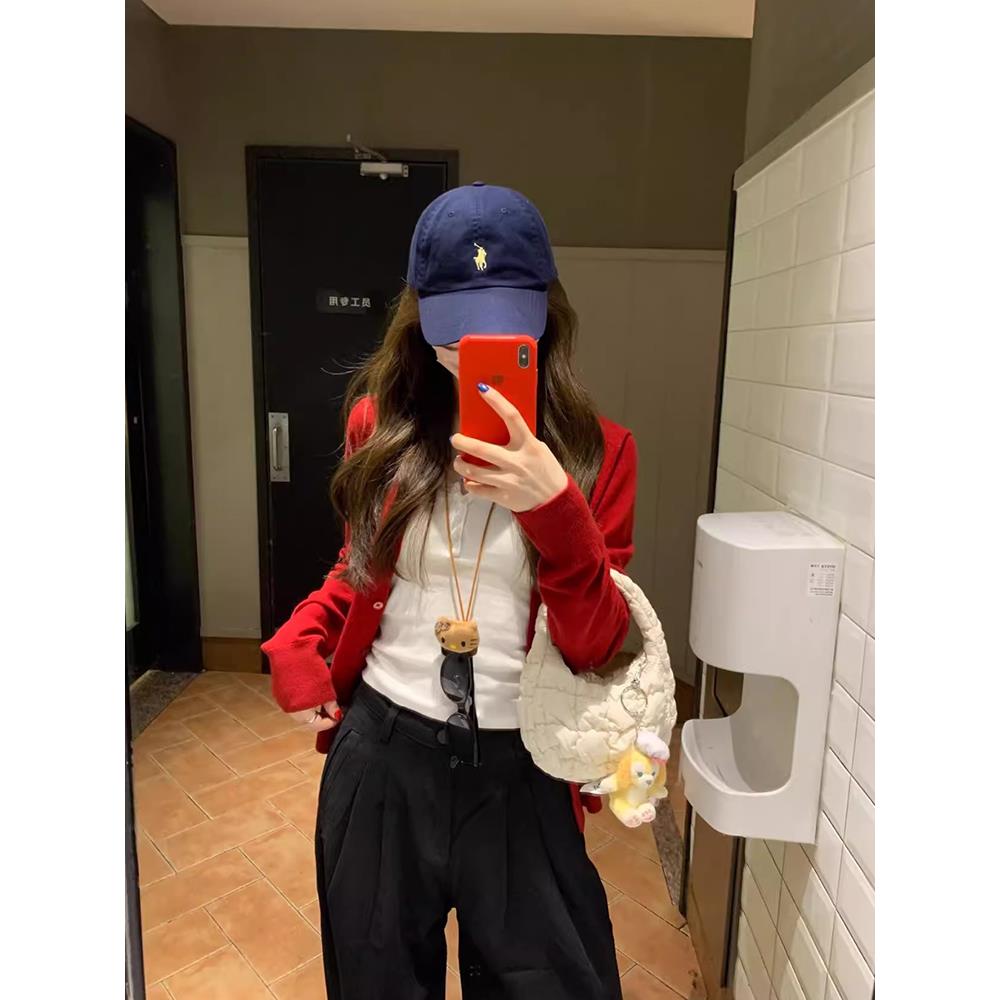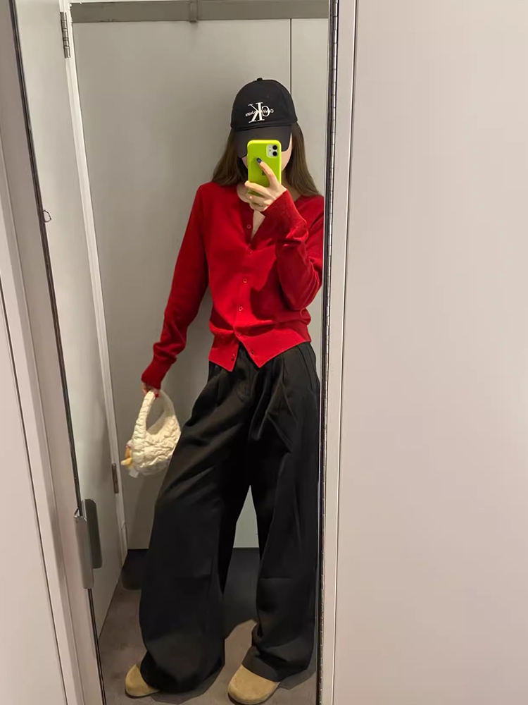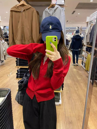 本命年红色针织开衫女薄款早秋季氛围感慵懒短款毛衣外套打底上衣