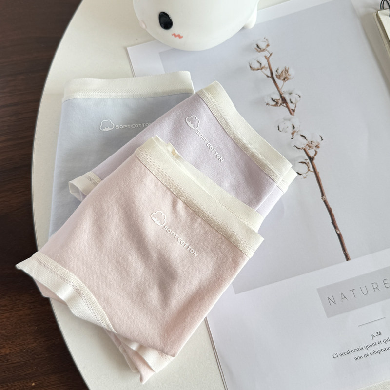 彩田内裤女全棉夏新款中高腰学生少女高中生平角柔软无痕短裤纯色