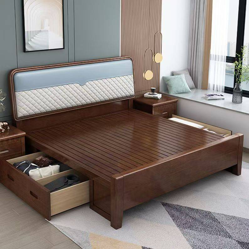 软包1.2米1.5m小户型实木床现代简约主卧1.8米收纳储物双人大床