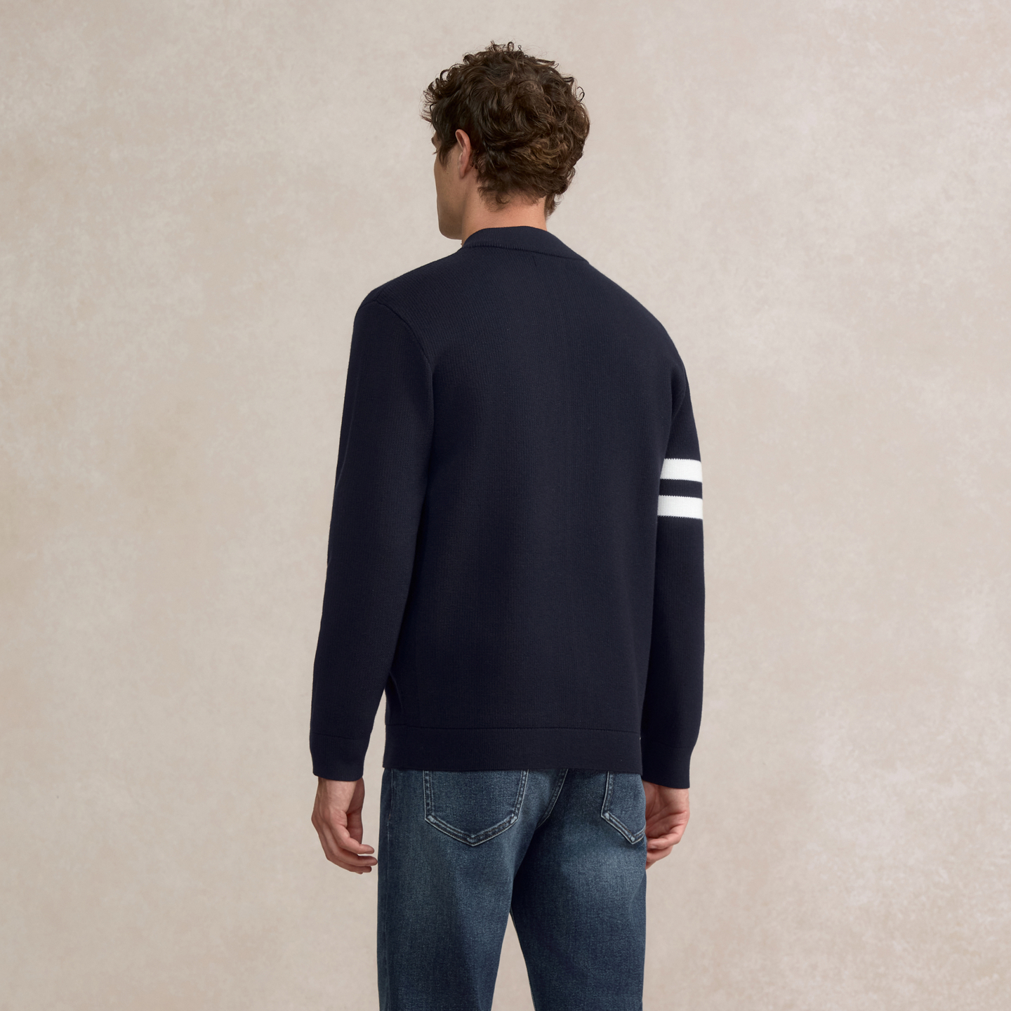 POLOWALK男装针织衫2025秋季新品商务休闲条纹立领开衫外套男式
