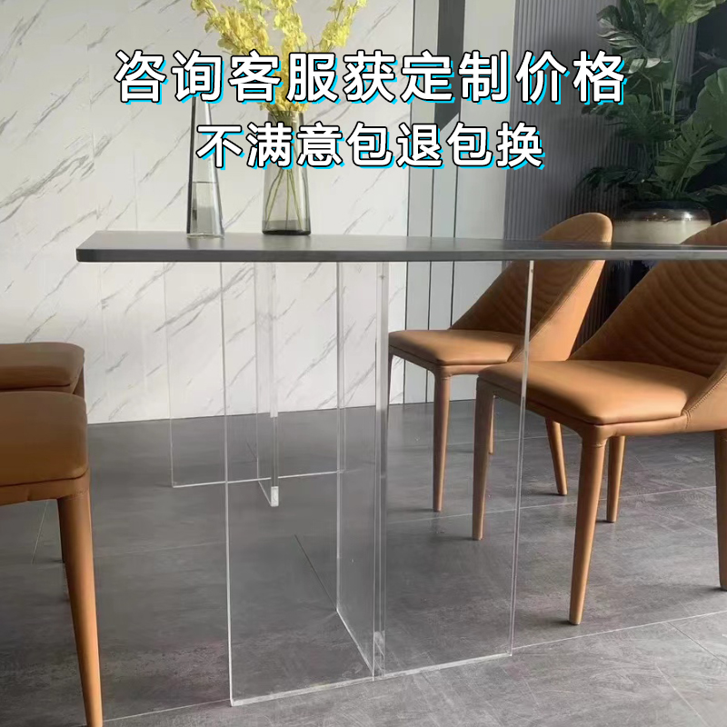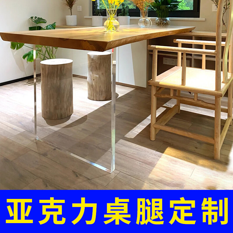 亚克力桌腿定制透明桌脚餐桌支架茶几岩板支撑腿茶色桌角厚板加工