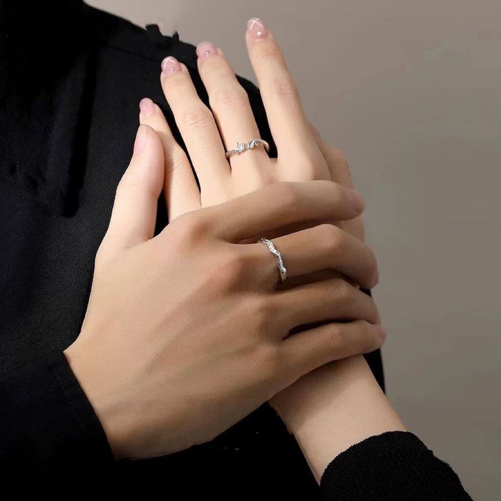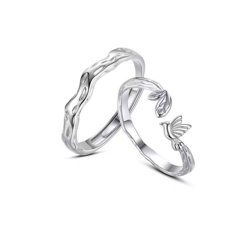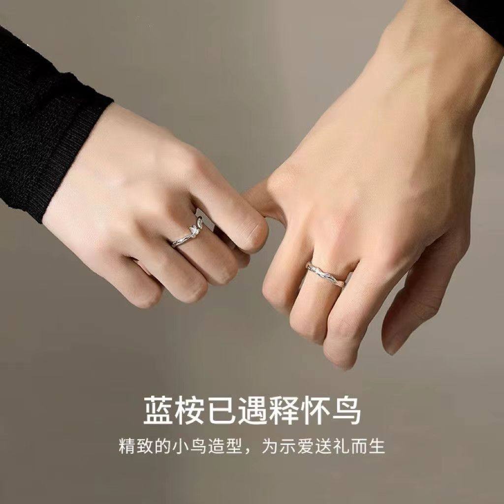 蓝桉已遇释怀鸟情侣ins戒指一对男女情侣款小众开口对戒生日礼物