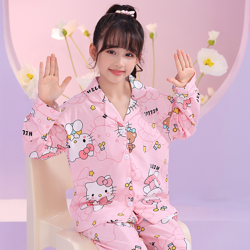 女童睡衣纯棉春秋2024新款儿童睡衣夏季薄款长袖小女孩草莓熊套装