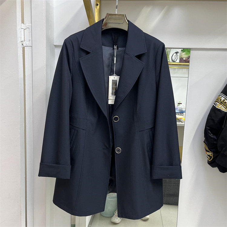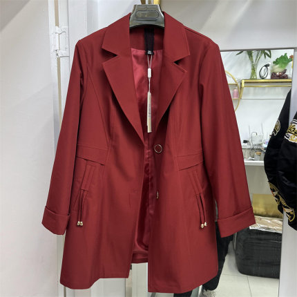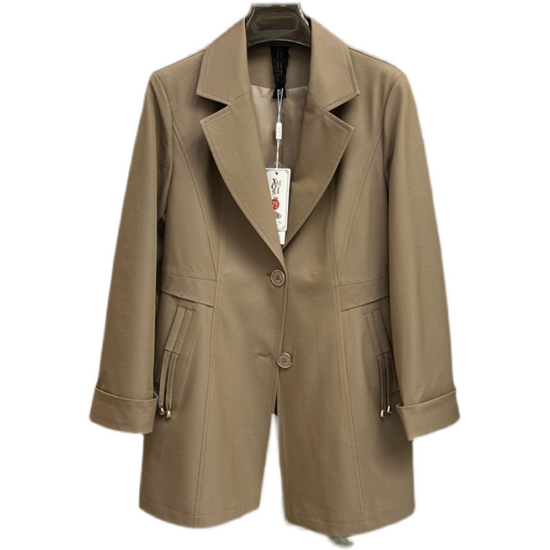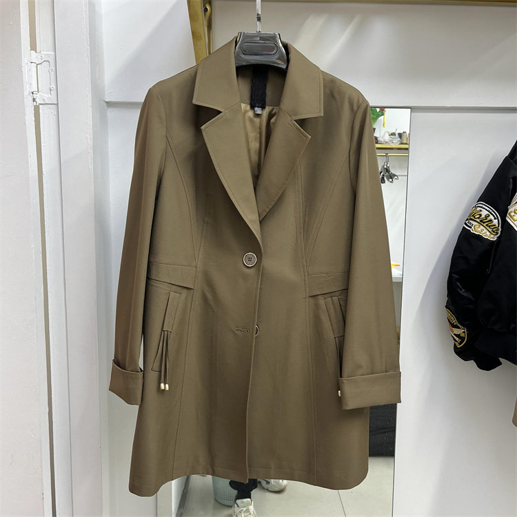 02专柜正品2023新款春季女装时尚西服领中长修身显瘦纯色风衣外套