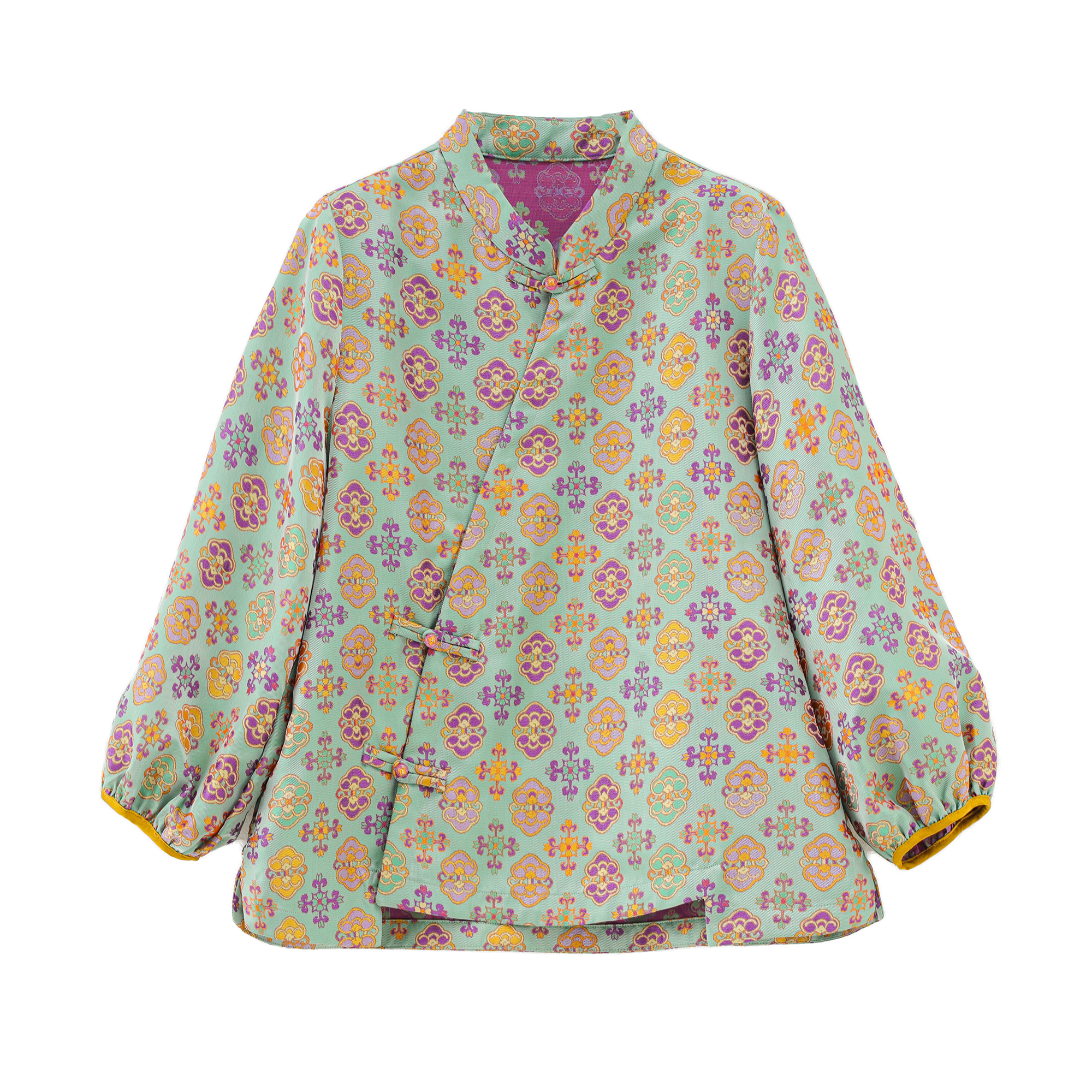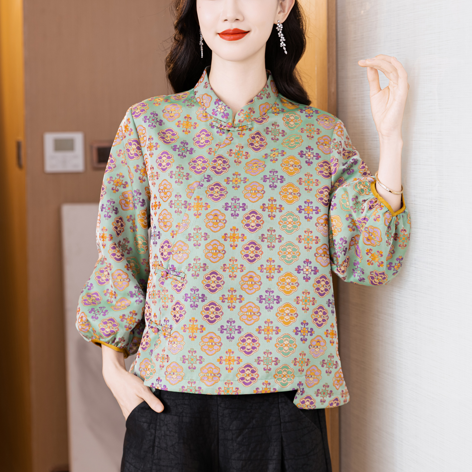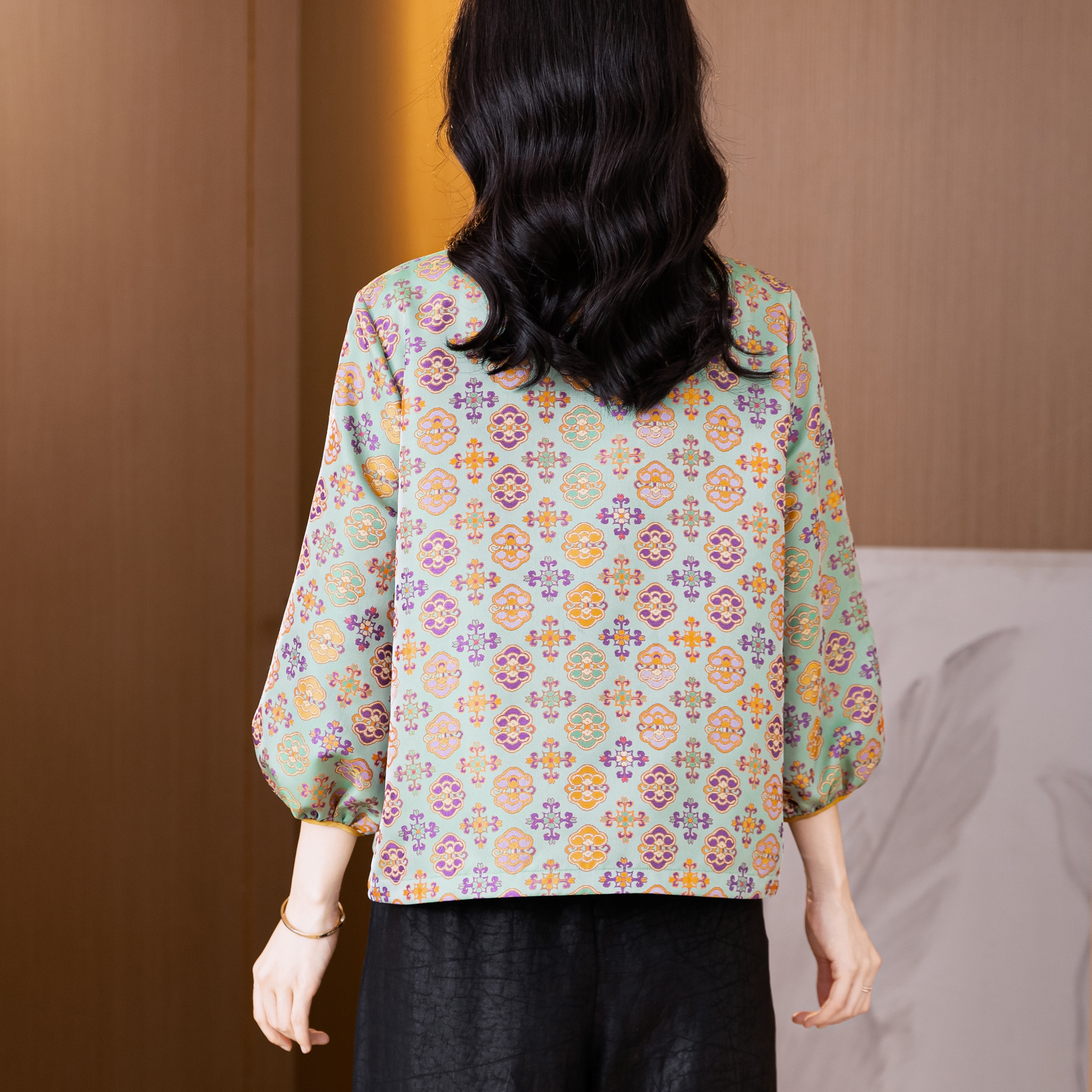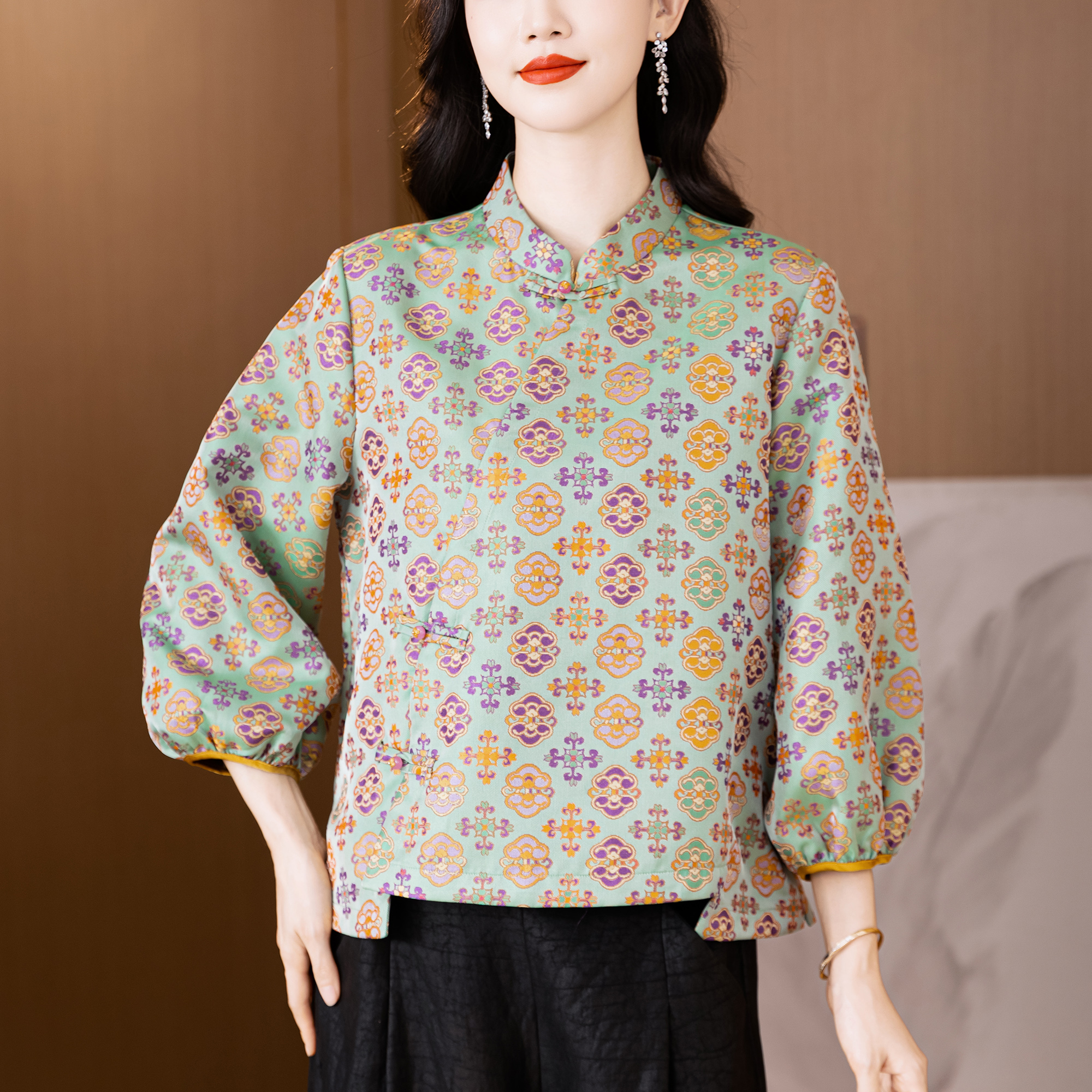 原版女秋装新中式唐装新款七分袖蜀宋锦提花国风衬衣国风盘扣上衣
