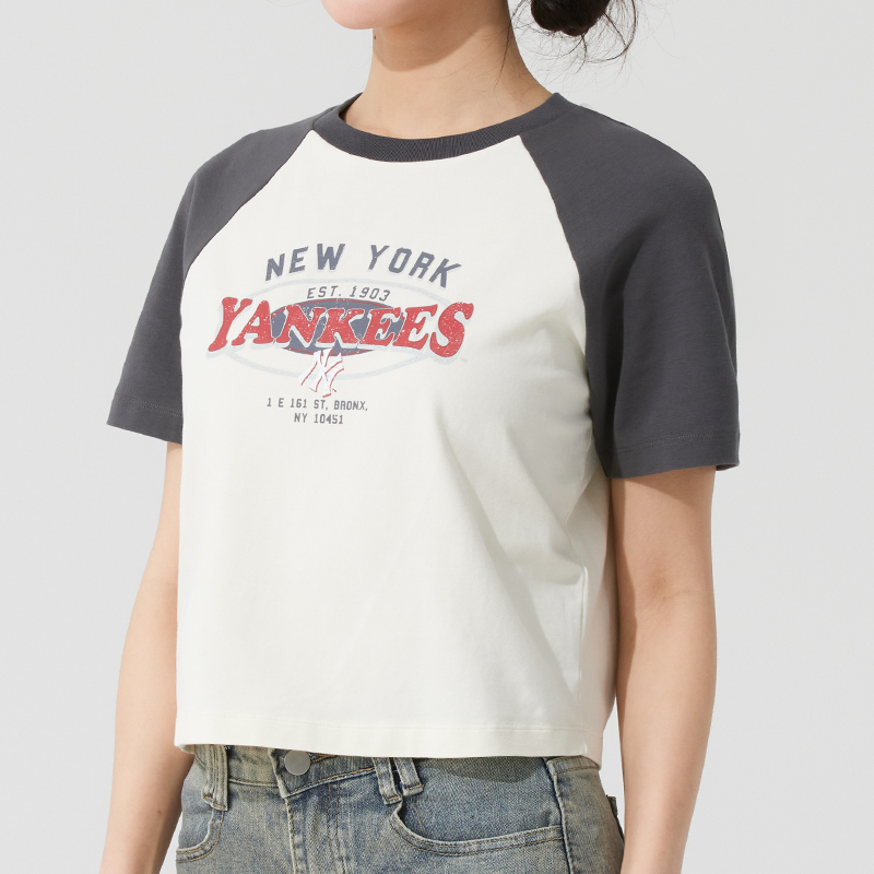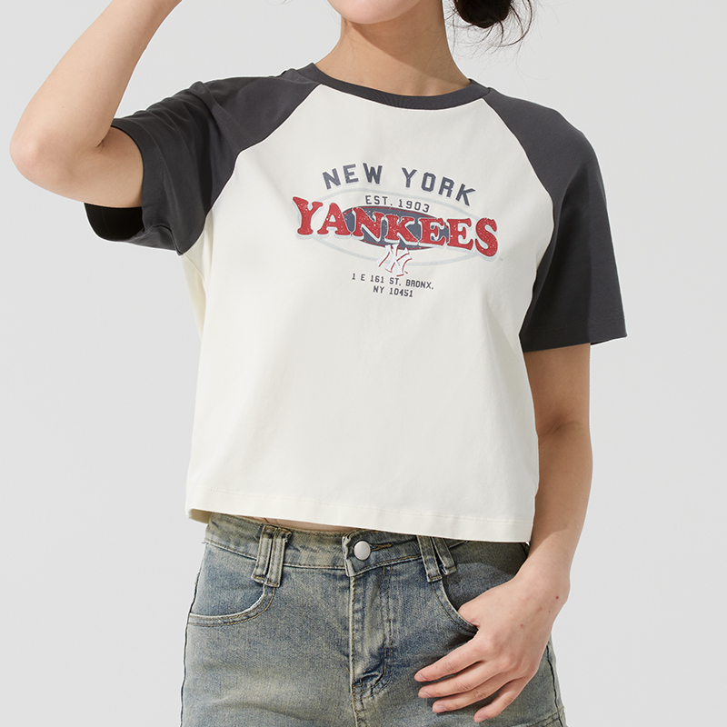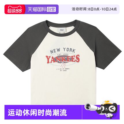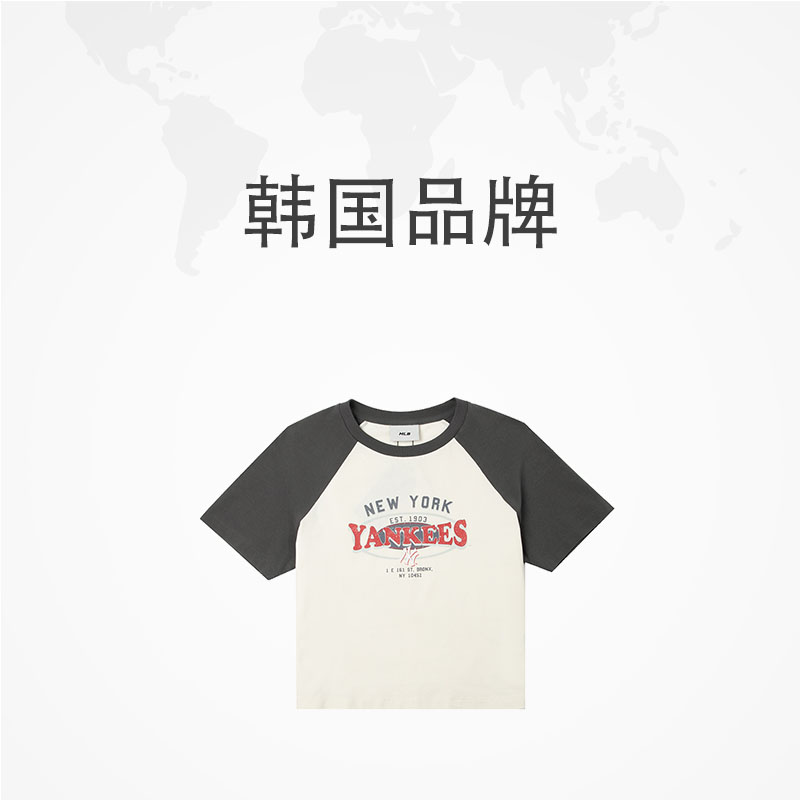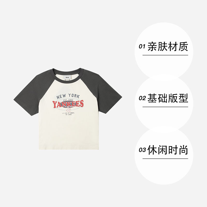 【自营】MLB女装T恤新款圆领半袖透气休闲服拼接上衣高腰露脐短袖