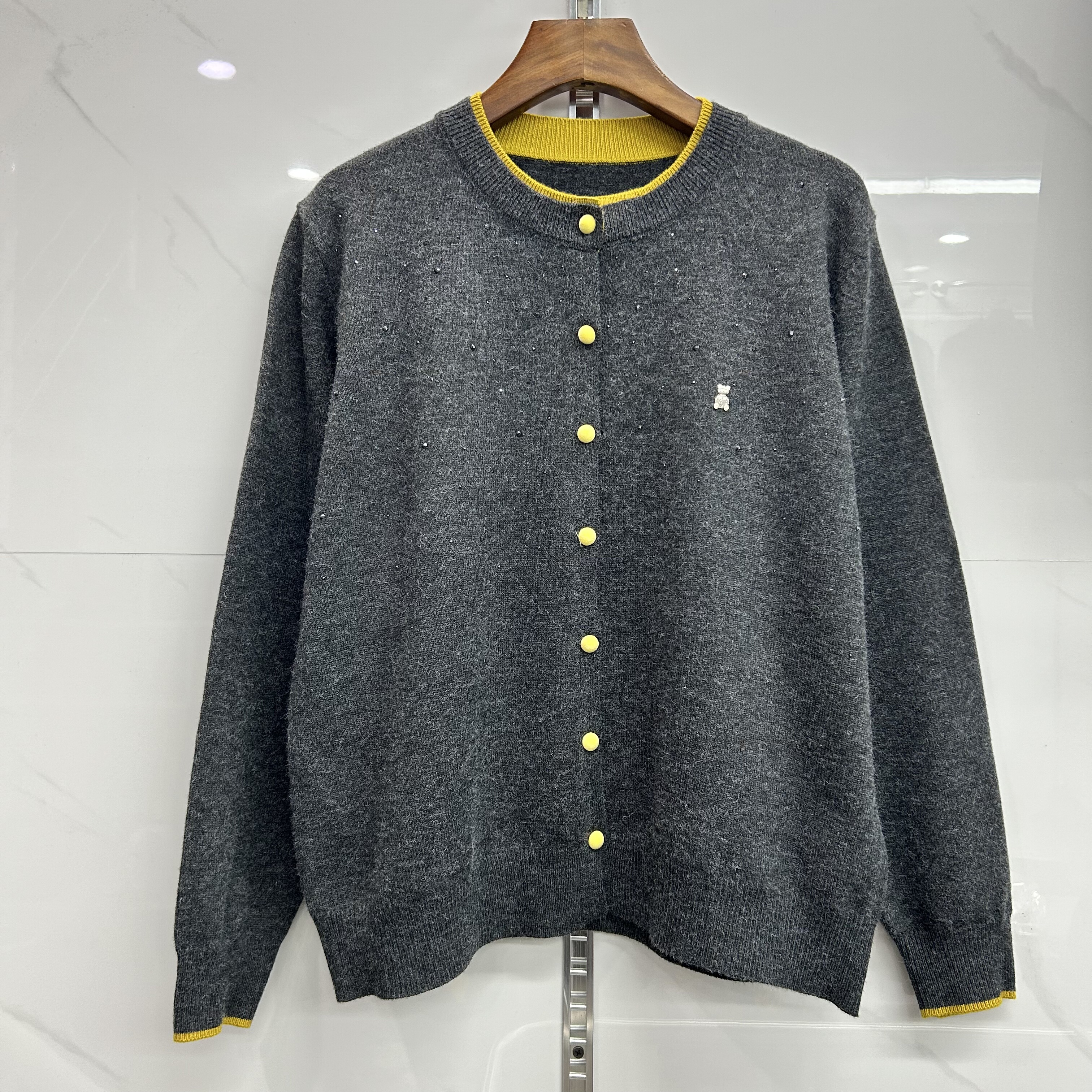 中老年妈妈装春秋新款2025开衫外套纽扣针织上衣圆领百搭外穿打底