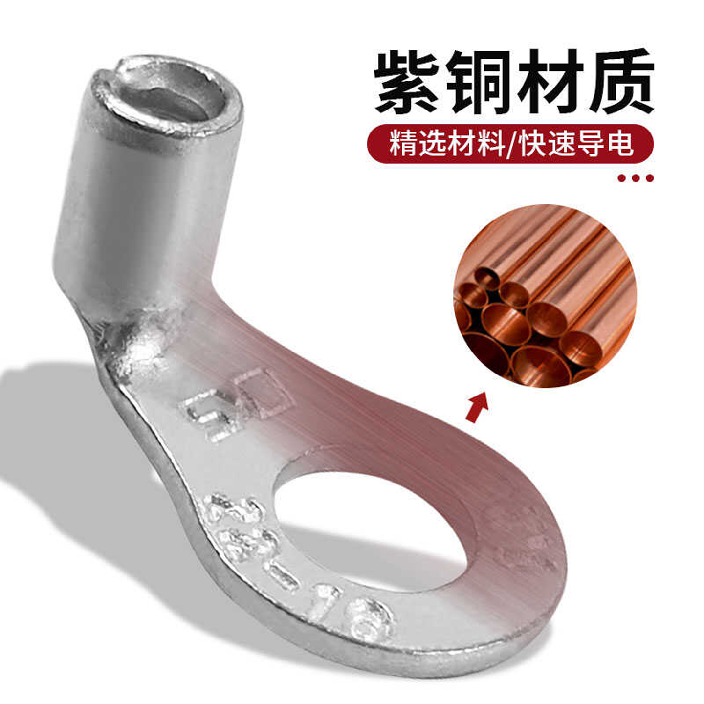 圆形90度折弯直角裸端子铜接线端子L形线耳RNB1.25-3/4/6/8/10S