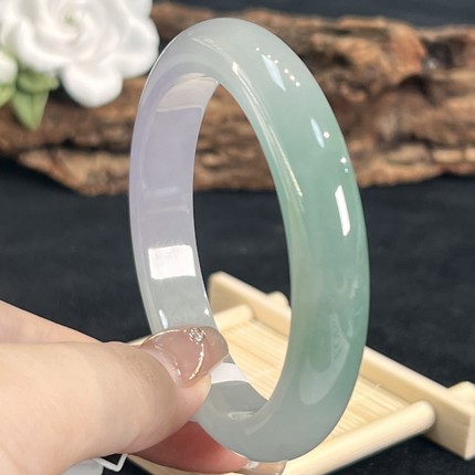 周z大福翡翠手镯飘绿花冰糯种紫罗兰春彩紫飘绿正圈玉手镯女送礼
