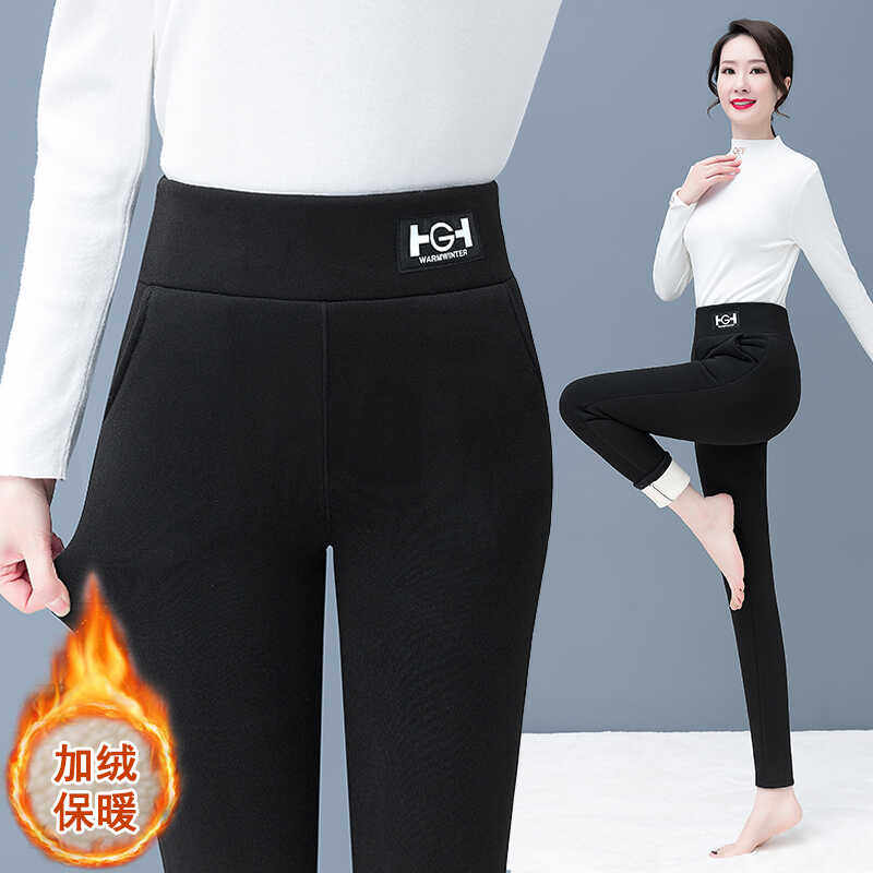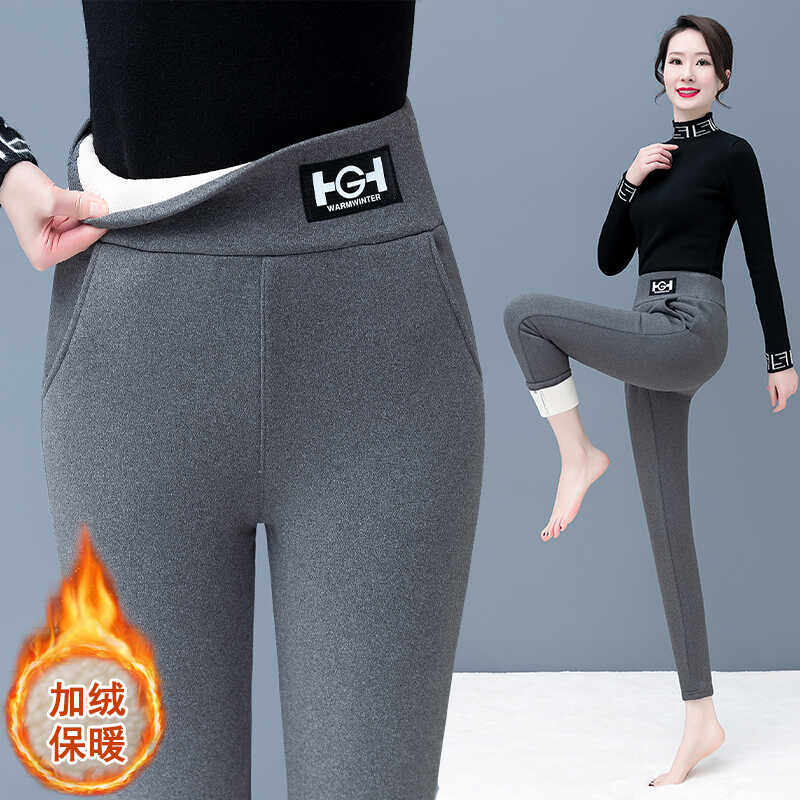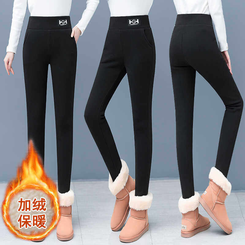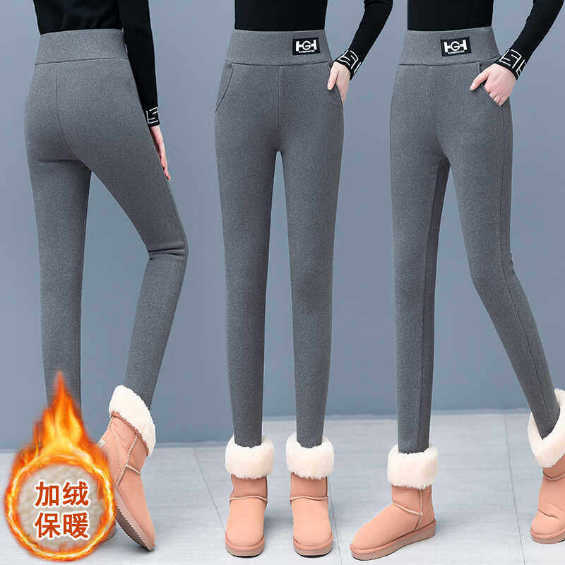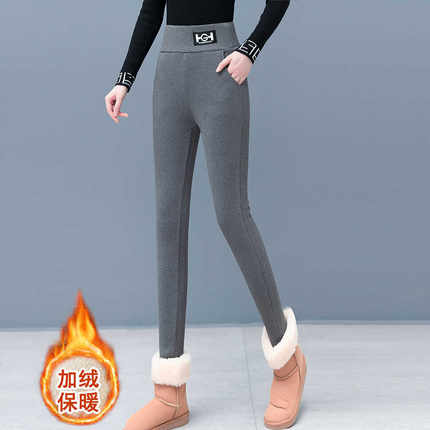 羊羔绒打底裤女秋冬季加绒加厚外穿高腰棉裤紧身小脚保暖一体长裤