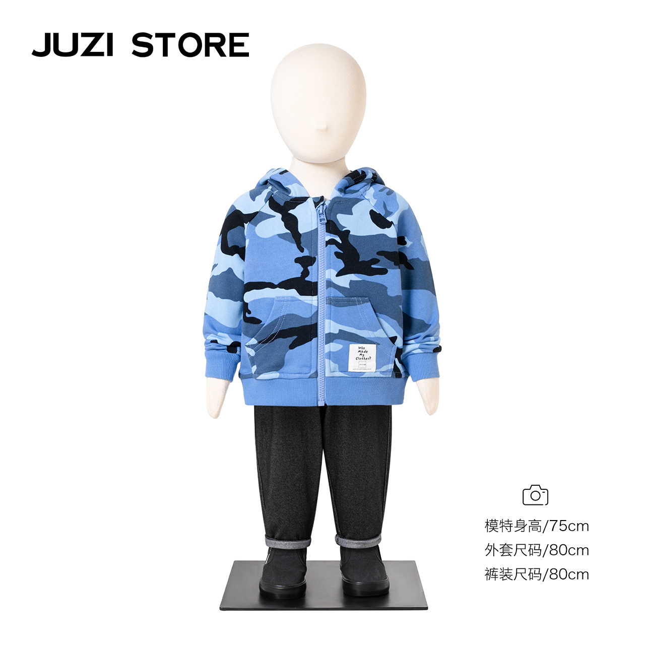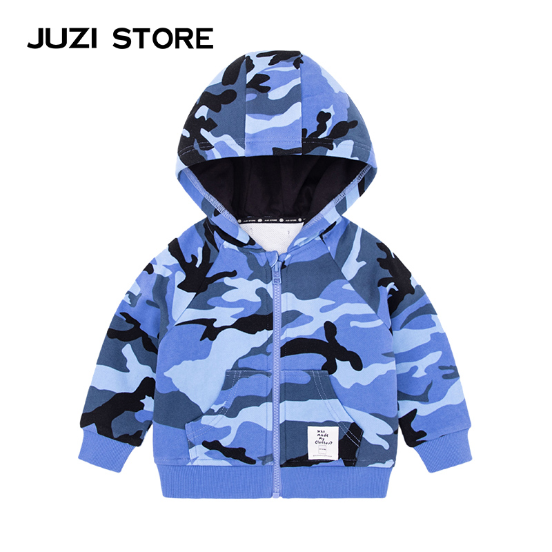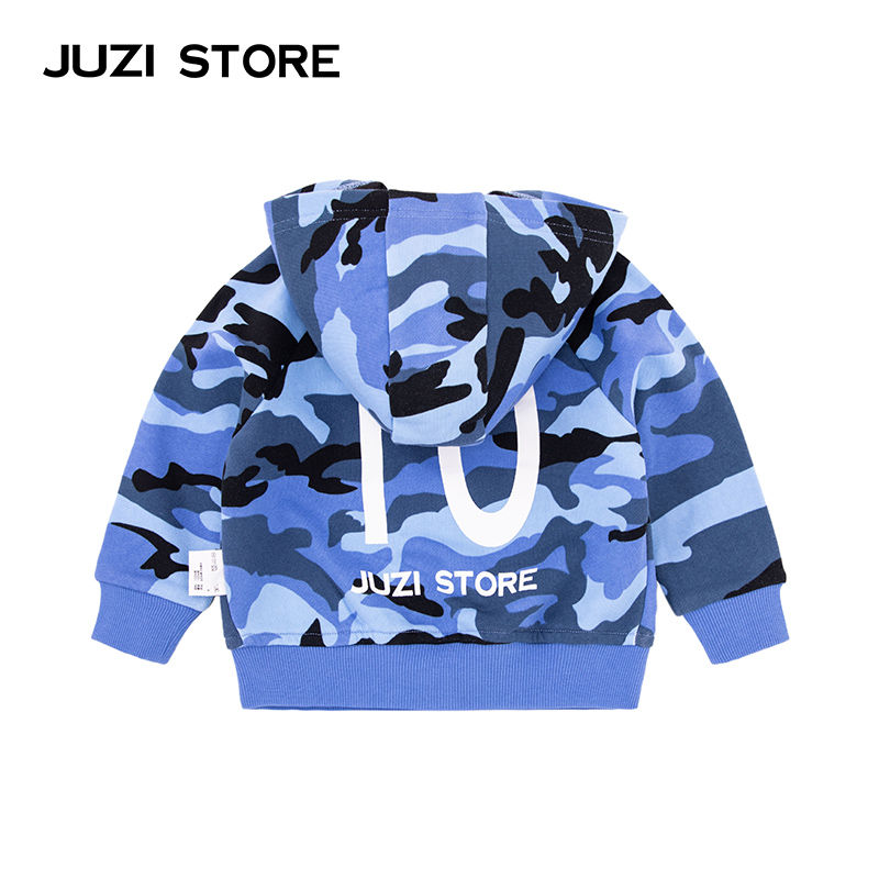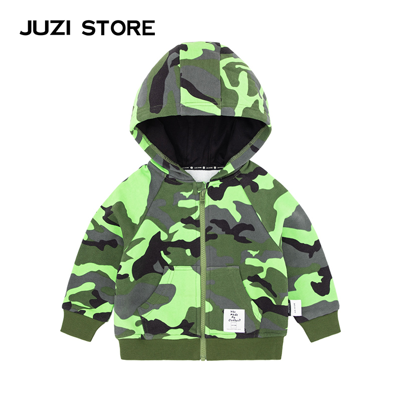 JUZI STORE童装拉链卫衣大毛圈迷彩印花连帽外套男女童1913417