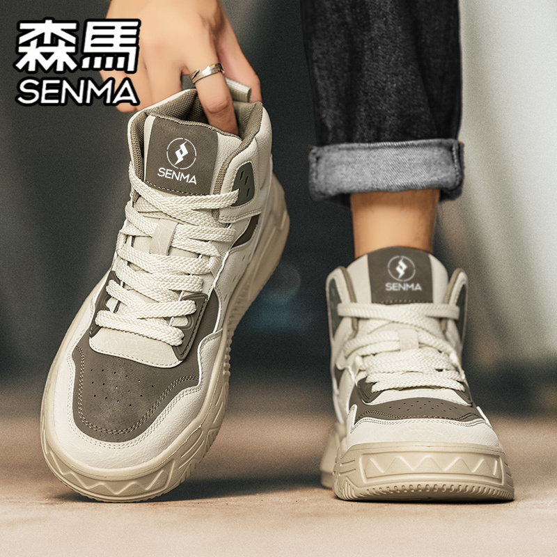 森马高帮男鞋秋季百搭休闲面包板鞋青少年运动厚底内增高空军潮鞋