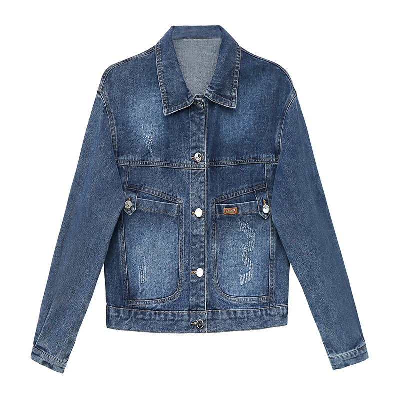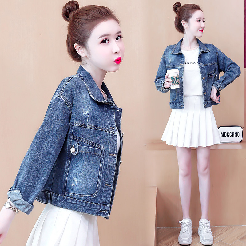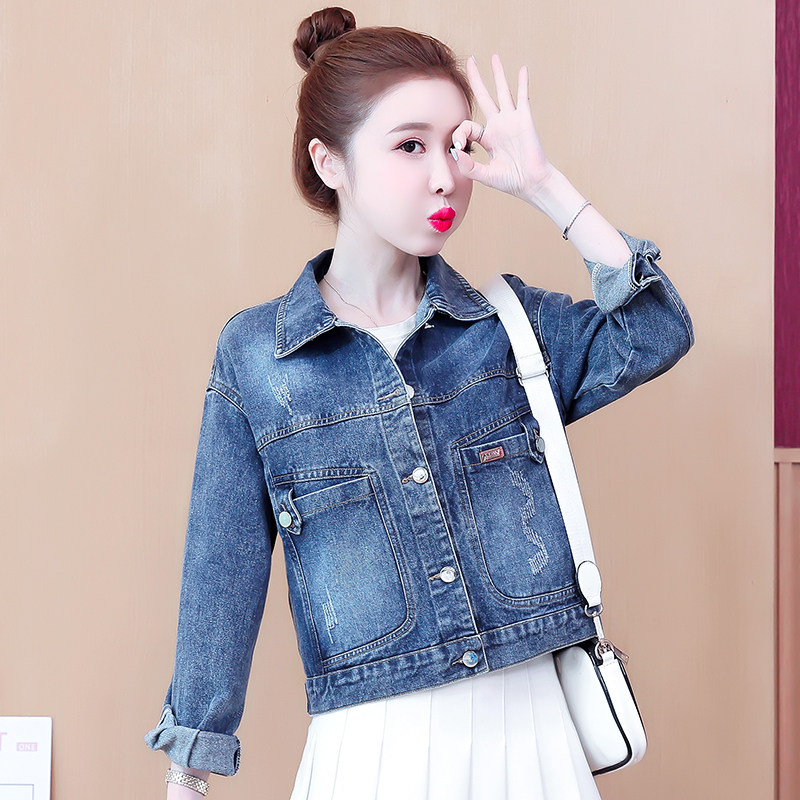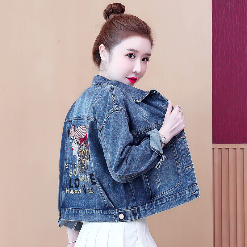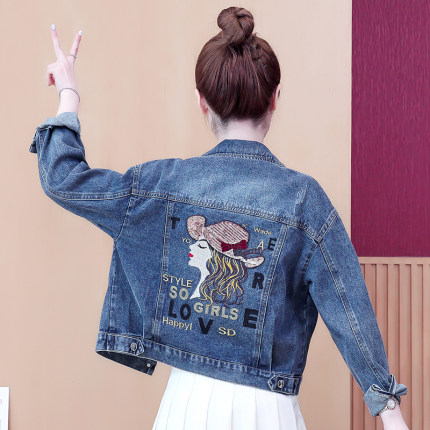 韩版后背刺绣短款牛仔外套女2025新款春秋通勤单排扣长袖百搭上衣