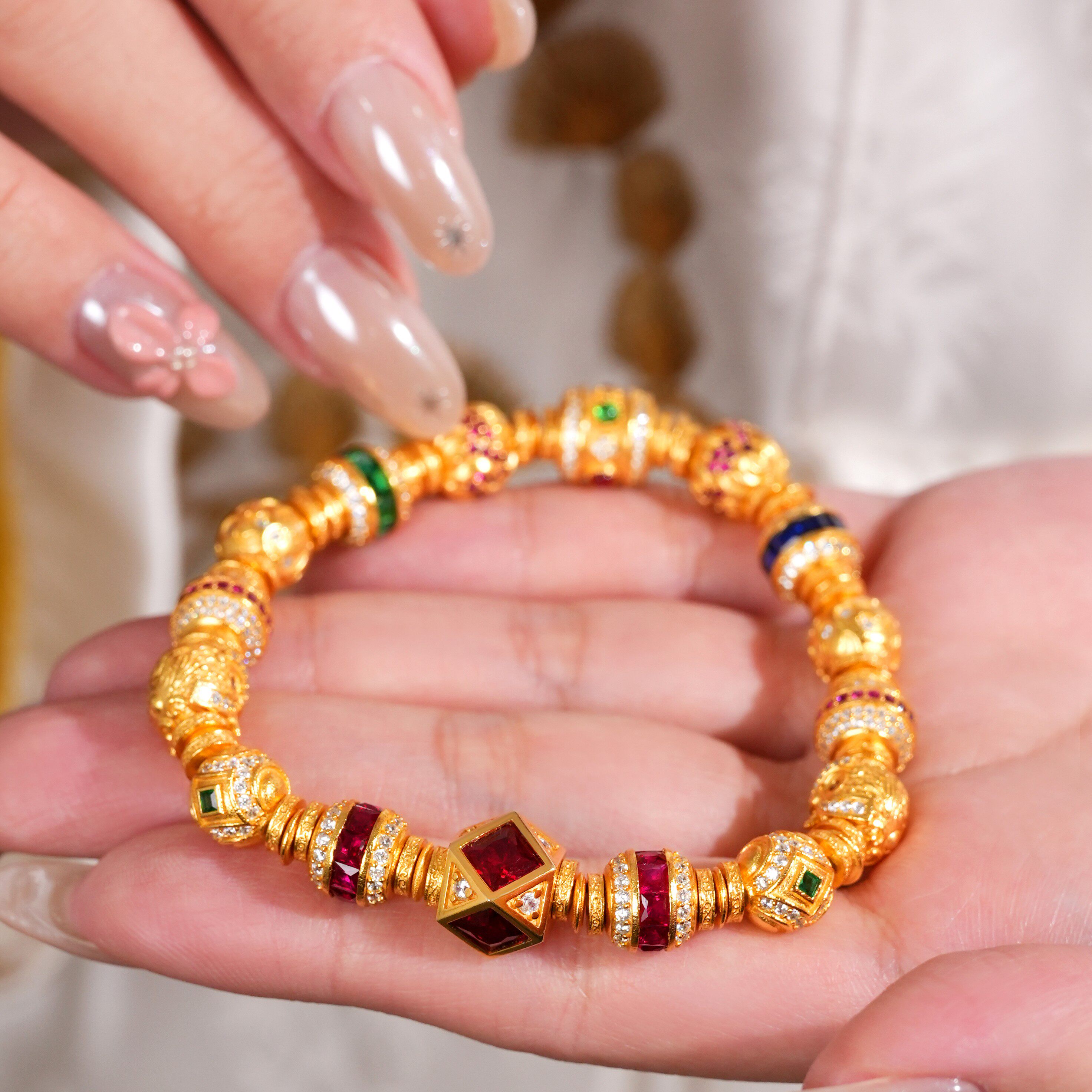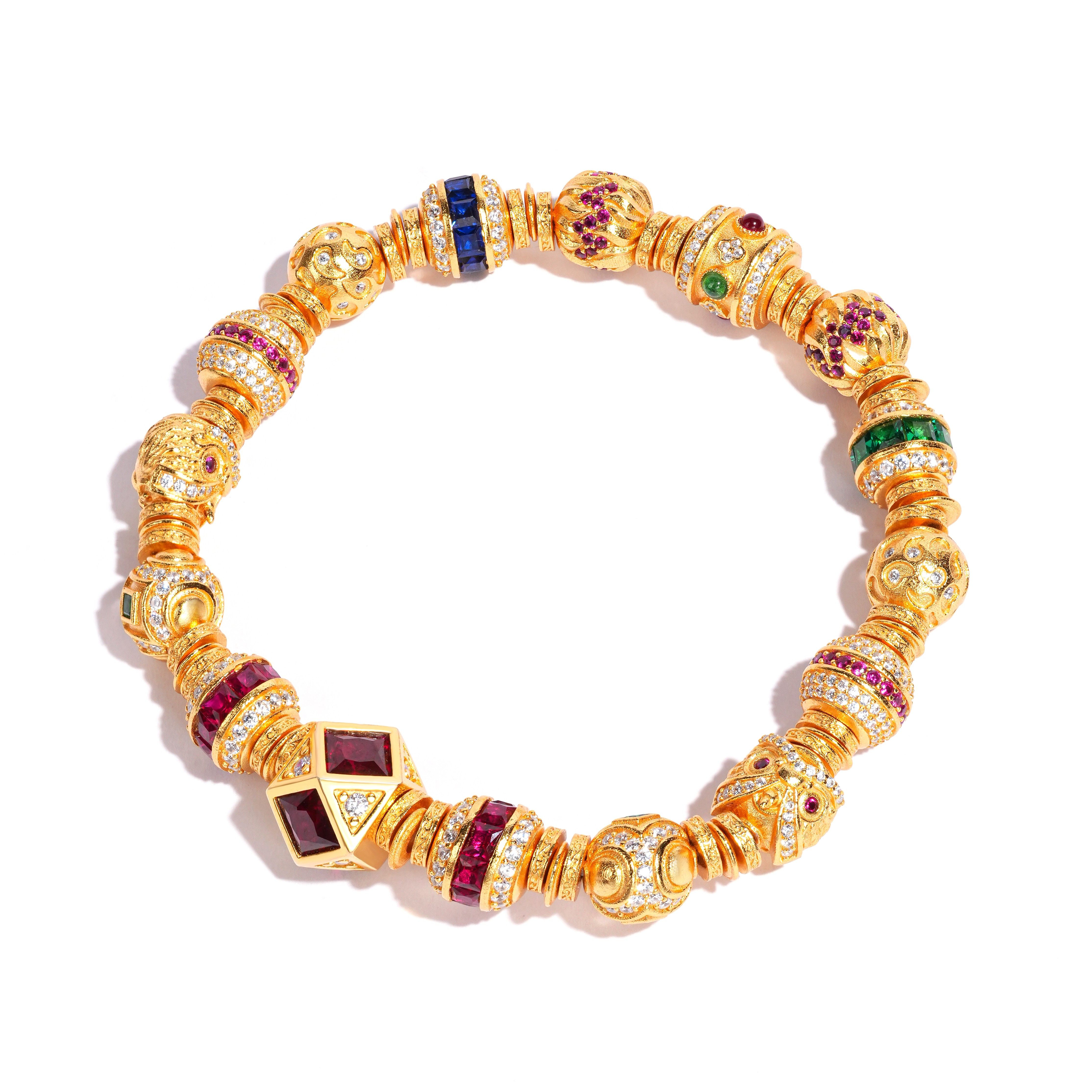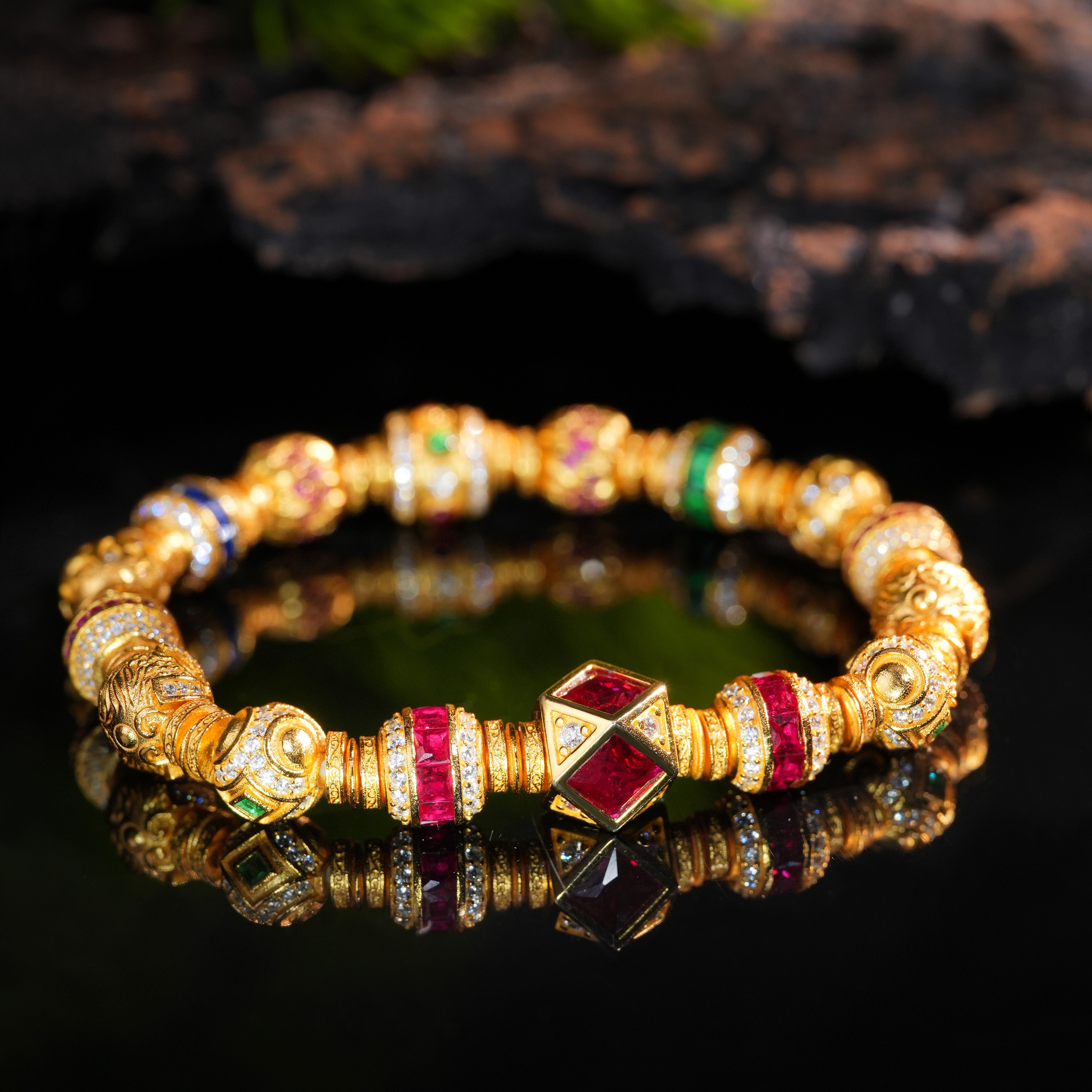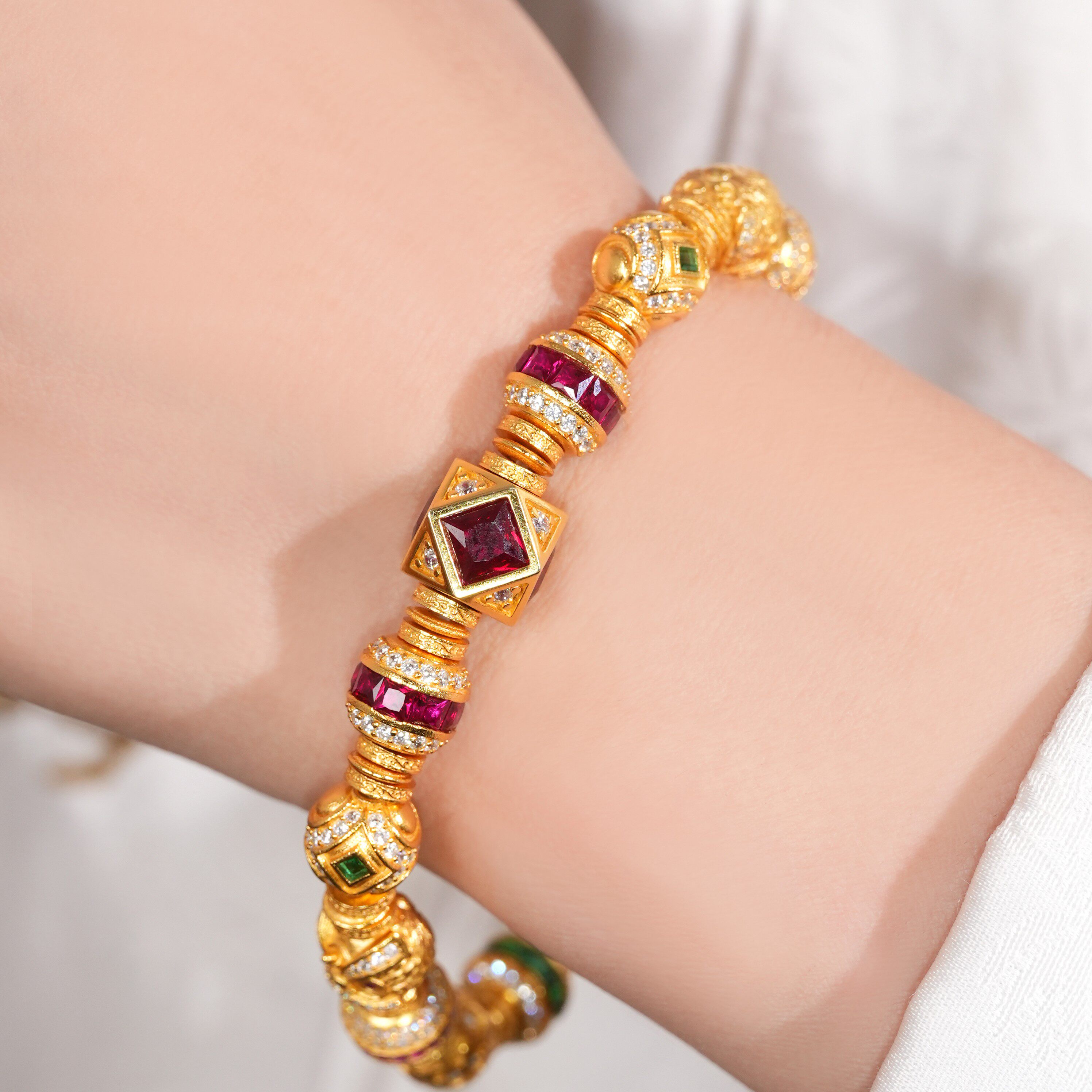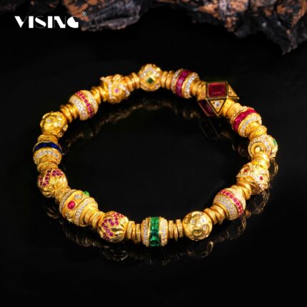 VISING珠宝培育红宝石【金盘缠】黄金色多宝多巴胺手串S925